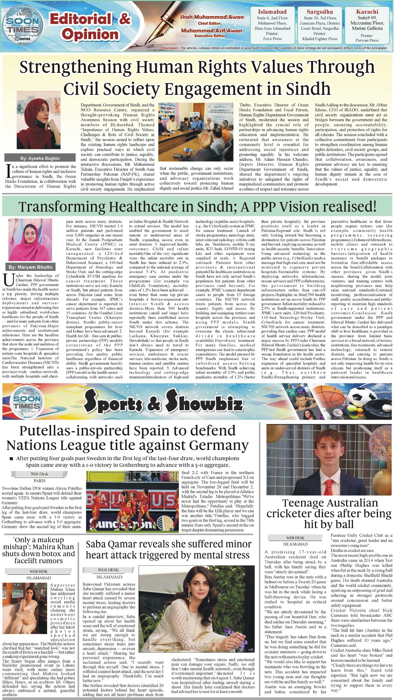 Daily Soon Times Page: 2 October 31, 2025 Daily Soon Times today's ePaper leading English national newspaper from Islamabad, Sargodha, Karachi, Pakistan << First << 2 >> Last >> Page 1Page 2Page 3Page 4 × Daily Soon Times 1234 1234 2