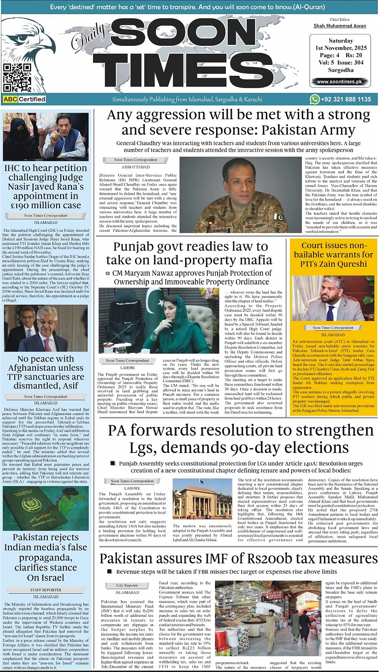 Daily Soon Times November 01, 2025 Daily Soon Times today's ePaper leading English national newspaper from Islamabad, Sargodha, Karachi, Pakistan << First << 1 >> Last >> Page 1Page 2Page 3Page 4 × Daily Soon Times 1234 1234 1