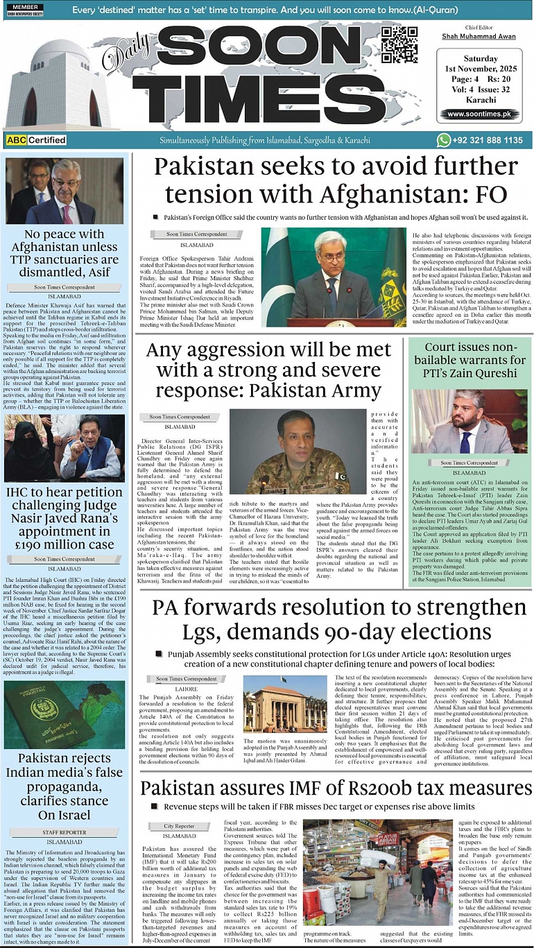 Daily Soon Times November 01, 2025 Daily Soon Times today's ePaper leading English national newspaper from Islamabad, Sargodha, Karachi, Pakistan << First << 1 >> Last >> Page 1Page 2Page 3Page 4 × Daily Soon Times 1k23k4 1k23k4 1k