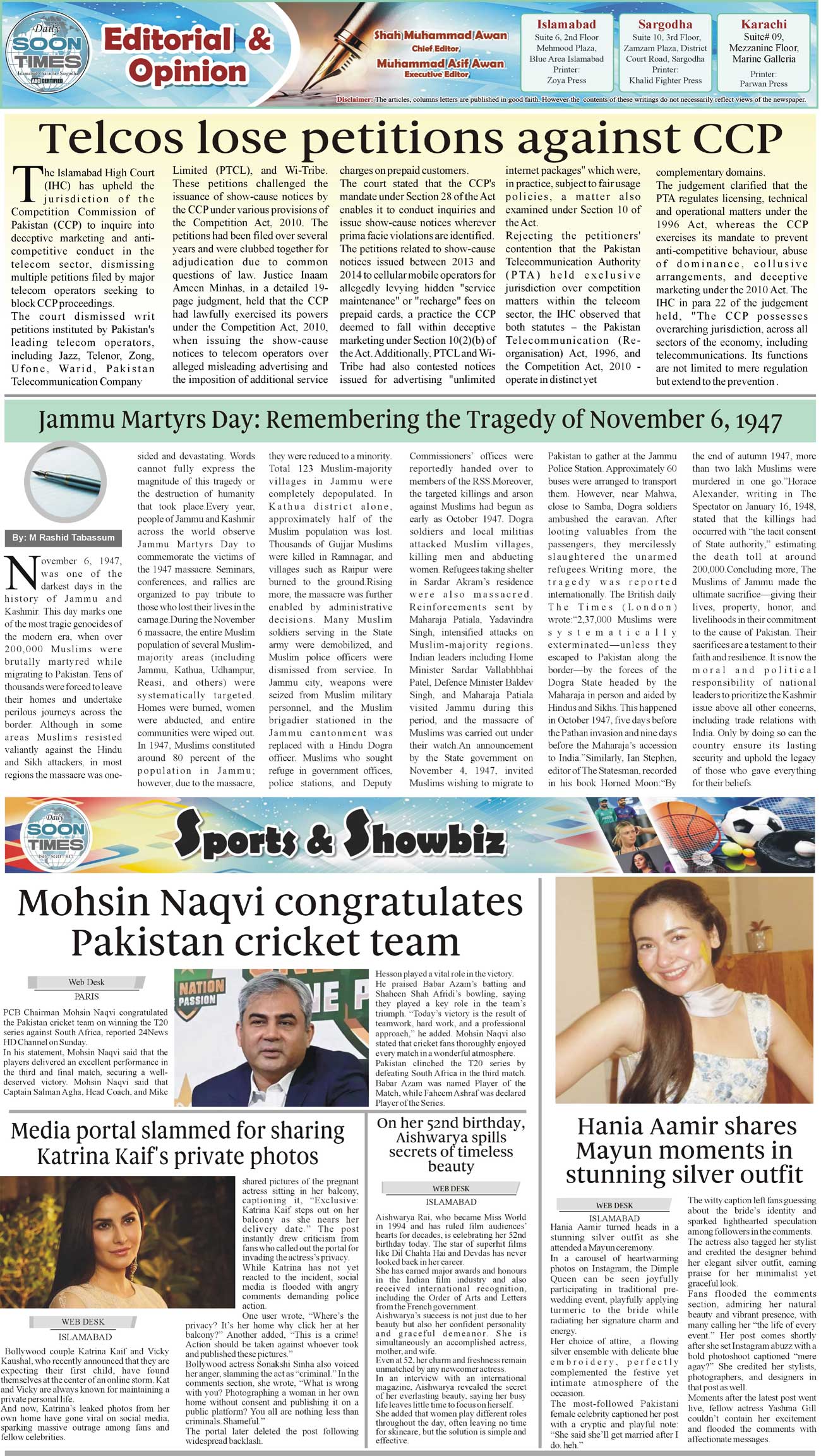 Daily Soon Times Page: 2 November 03, 2025 Daily Soon Times today's ePaper leading English national newspaper from Islamabad, Sargodha, Karachi, Pakistan << First << 2 >> Last >> Page 1Page 2Page 3Page 4 × Daily Soon Times 1234 1234 2