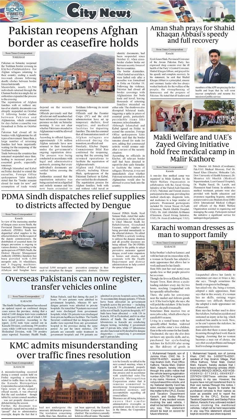 Daily Soon Times Page: 3 November 03, 2025 Daily Soon Times today's ePaper leading English national newspaper from Islamabad, Sargodha, Karachi, Pakistan << First << 3 >> Last >> Page 1Page 2Page 3Page 4 × Daily Soon Times 1k23k4 1k23k4 3k