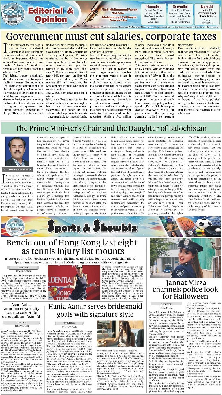 Daily Soon Times Page: 2 November 04, 2025 Daily Soon Times today's ePaper leading English national newspaper from Islamabad, Sargodha, Karachi, Pakistan << First << 2 >> Last >> Page 1Page 2Page 3Page 4 × Daily Soon Times 1k23k4 1k23k4 2
