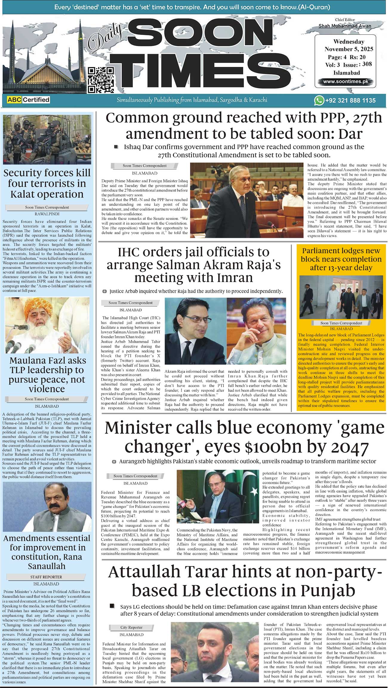 Daily Soon Times November 05, 2025 Daily Soon Times today's ePaper leading English national newspaper from Islamabad, Sargodha, Karachi, Pakistan << First << 1 >> Last >> Page 1Page 2Page 3Page 4 × Daily Soon Times 1.234 1.234 1.