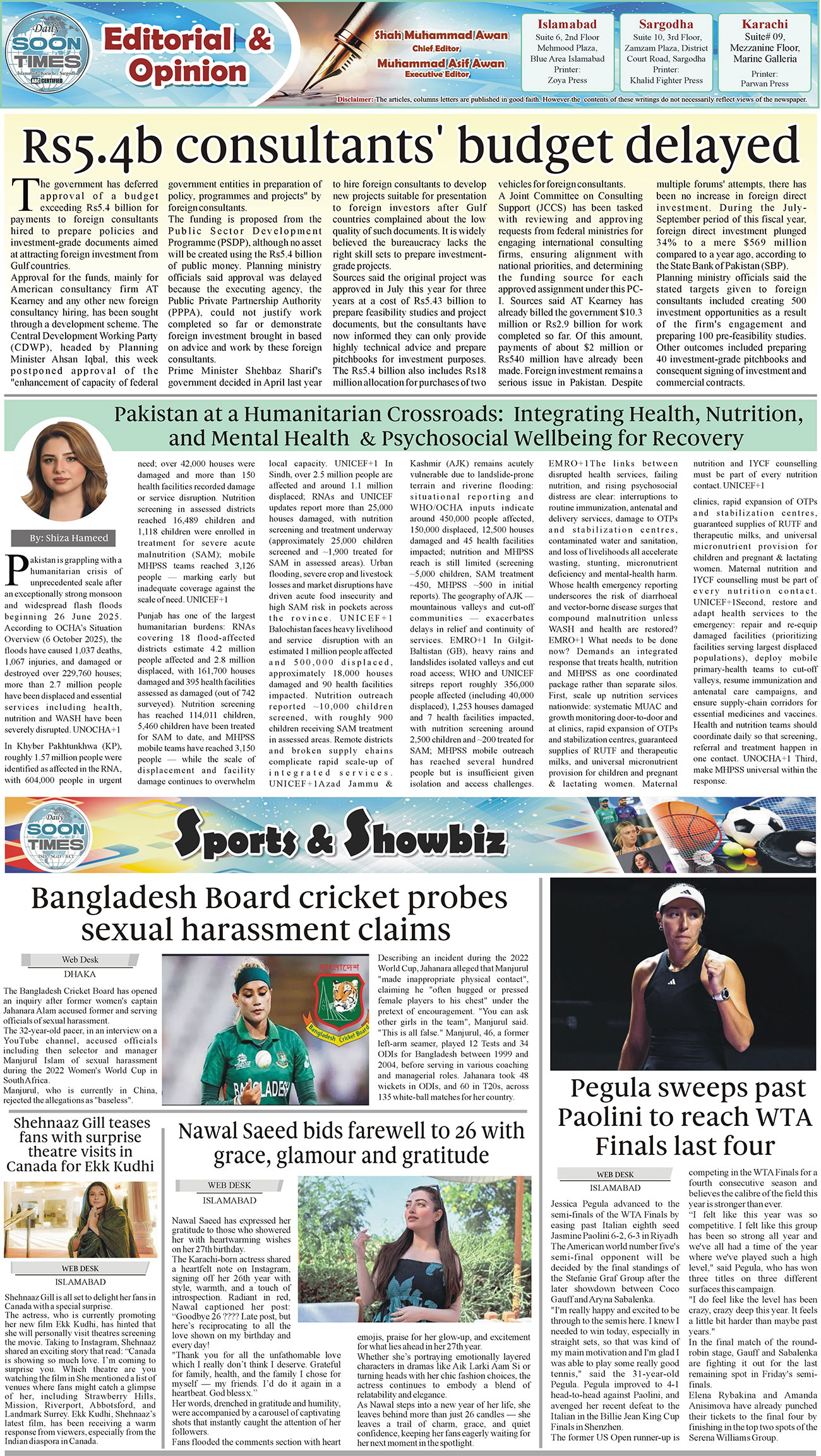 Daily Soon Times Page: 2 November 08, 2025 Daily Soon Times today's ePaper leading English national newspaper from Islamabad, Sargodha, Karachi, Pakistan << First << 2 >> Last >> Page 1Page 2Page 3Page 4 × Daily Soon Times 1234 1234 2