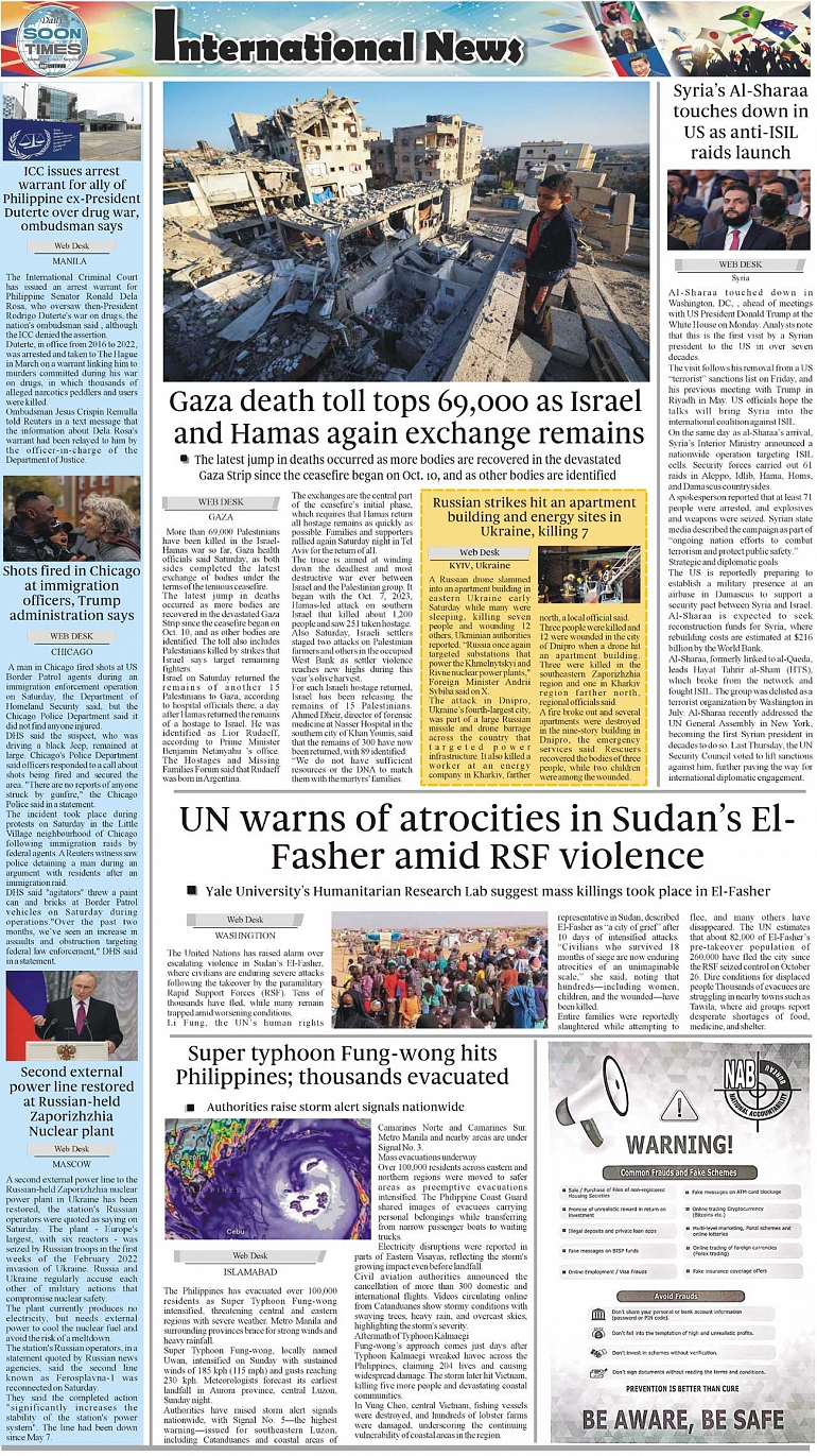 Daily Soon Times Page: 4 November 10, 2025 Daily Soon Times today's ePaper leading English national newspaper from Islamabad, Sargodha, Karachi, Pakistan << First << 4 >> Last >> Page 1Page 2Page 3Page 4 × Daily Soon Times 1.234. 1.234. 4.
