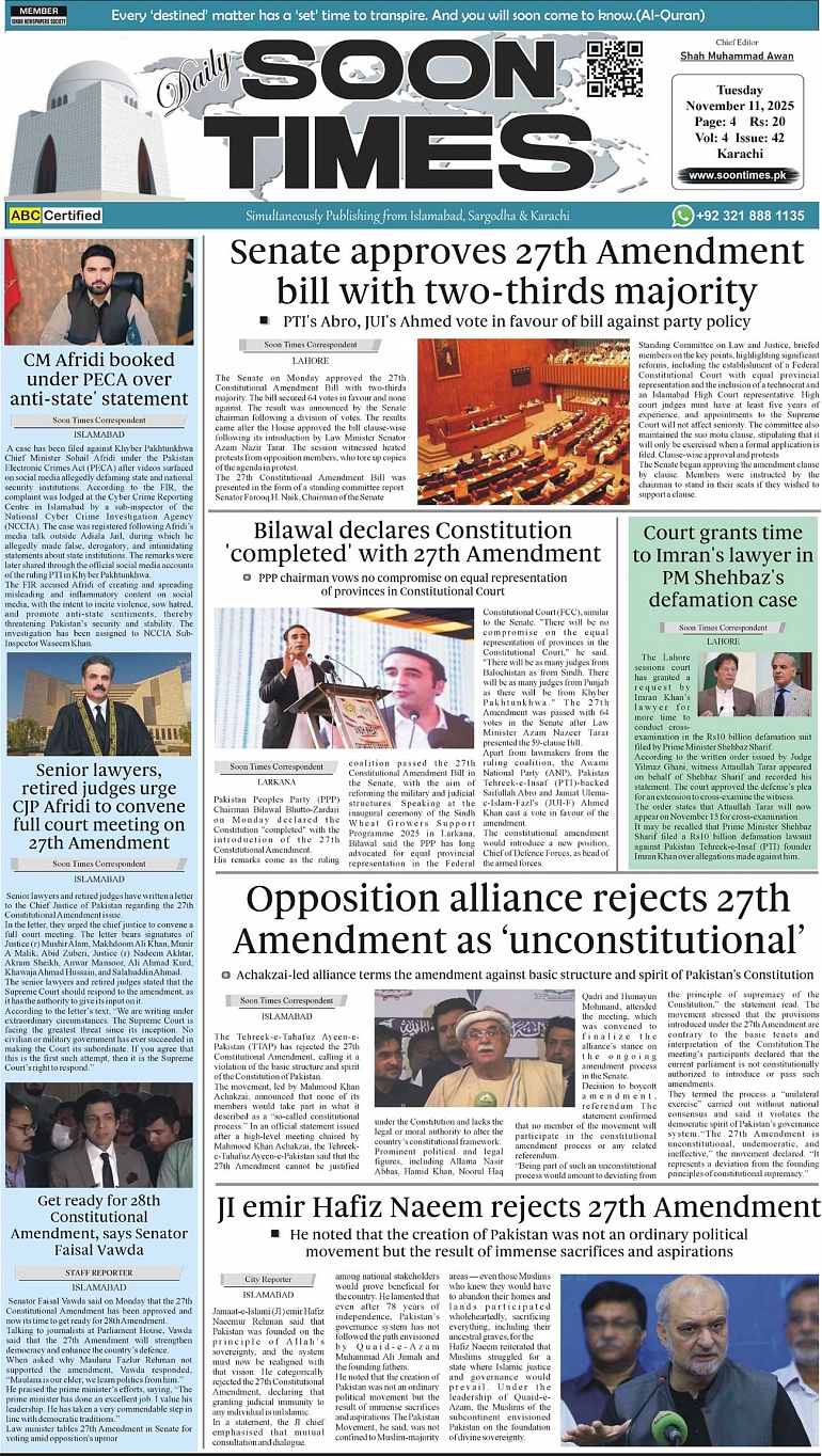 Daily Soon Times today's ePaper leading English national newspaper from Islamabad, Sargodha, Karachi, Pakistan