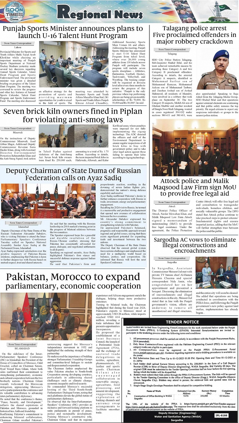 Daily Soon Times Page: 3 November 12, 2025 Daily Soon Times today's ePaper leading English national newspaper from Islamabad, Sargodha, Karachi, Pakistan << First << 3 >> Last >> Page 1Page 2Page 3Page 4 × Daily Soon Times 1..234 1..234 3
