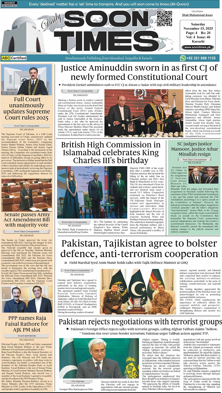 Daily Soon Times today's ePaper leading English national newspaper from Islamabad, Sargodha, Karachi, Pakistan