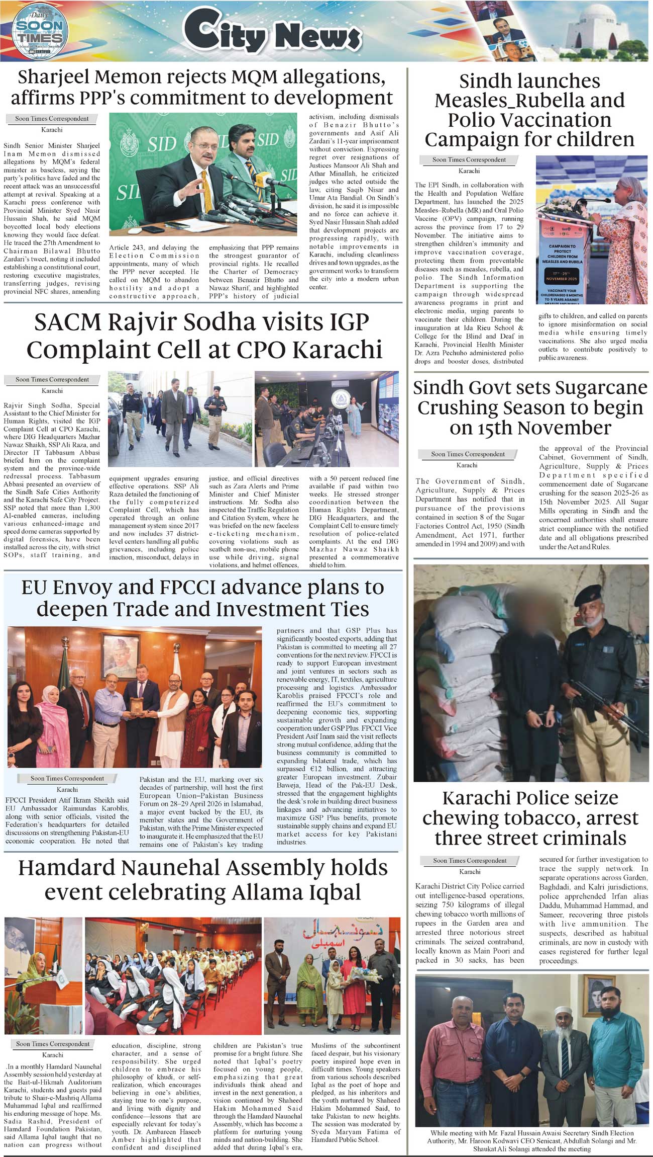 Daily Soon Times Page: 3 November 18, 2025 Daily Soon Times today's ePaper leading English national newspaper from Islamabad, Sargodha, Karachi, Pakistan << First << 3 >> Last >> Page 1Page 2Page 3Page 4 × Daily Soon Times 1k23k4 1k23k4 3k