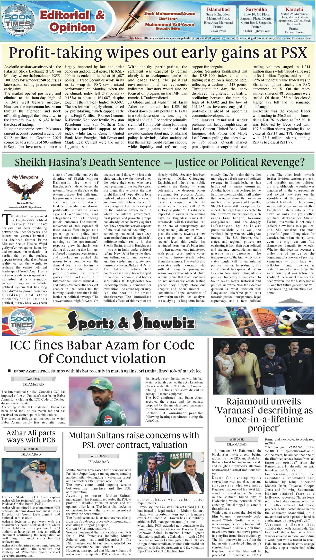 Daily Soon Times Page: 2 November 19, 2025 Daily Soon Times today's ePaper leading English national newspaper from Islamabad, Sargodha, Karachi, Pakistan << First << 2 >> Last >> Page 1Page 2Page 3Page 4 × Daily Soon Times 1.234. 1.234. 2