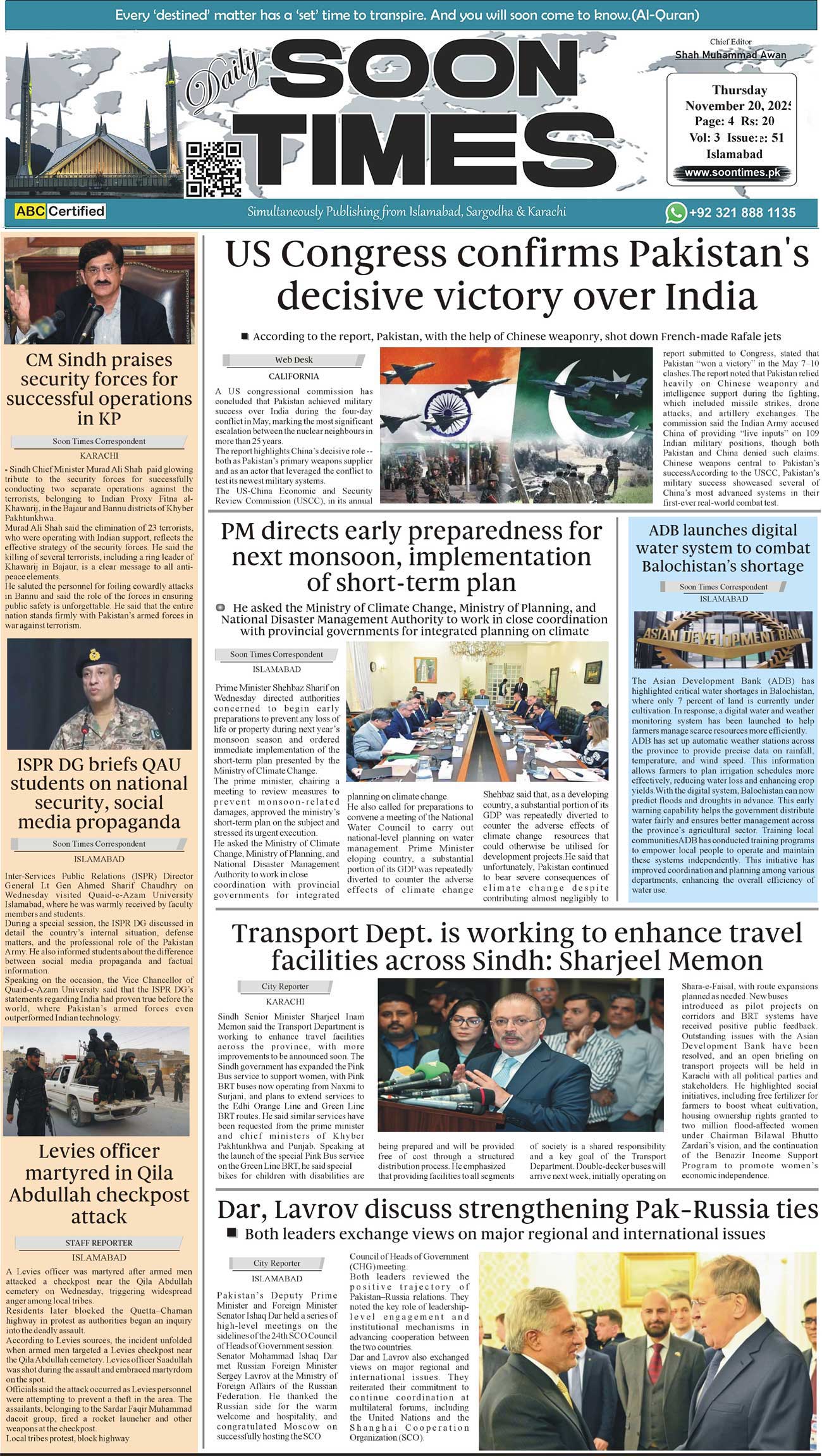 Daily Soon Times November 20, 2025 Daily Soon Times today's ePaper leading English national newspaper from Islamabad, Sargodha, Karachi, Pakistan << First << 1 >> Last >> Page 1Page 2Page 3Page 4 × Daily Soon Times 1.234 1.234 1.