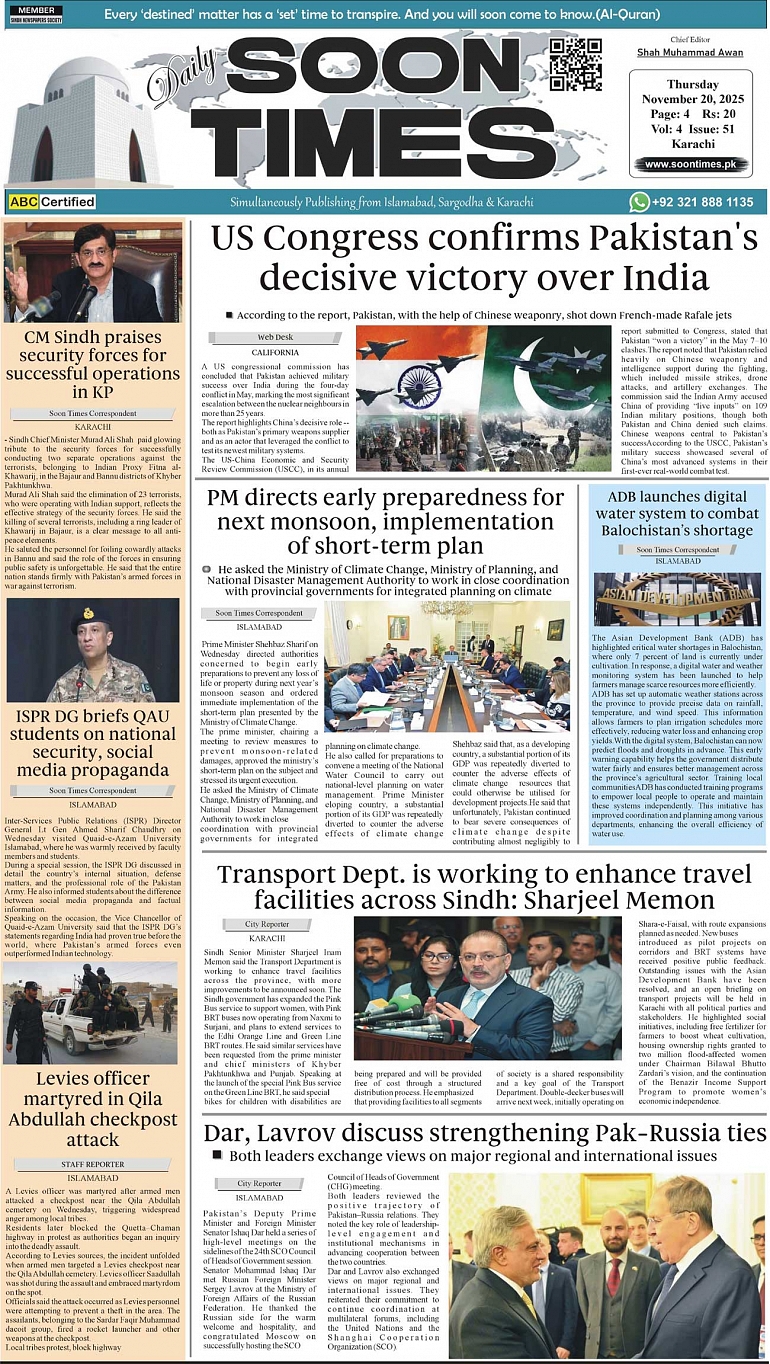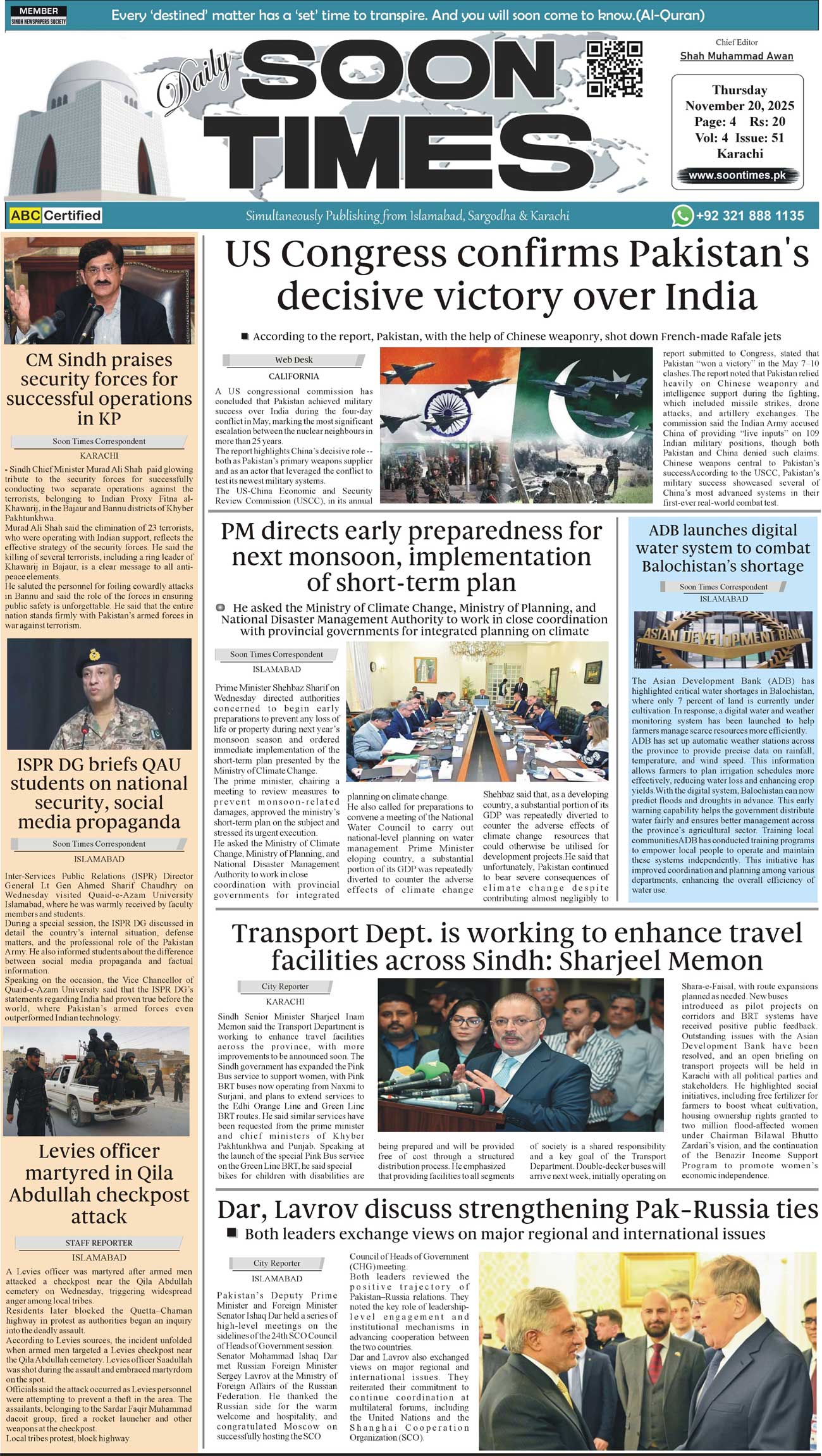 Daily Soon Times November 20, 2025 Daily Soon Times today's ePaper leading English national newspaper from Islamabad, Sargodha, Karachi, Pakistan << First << 1 >> Last >> Page 1Page 2Page 3Page 4 × Daily Soon Times 1k23k4 1k23k4 1k