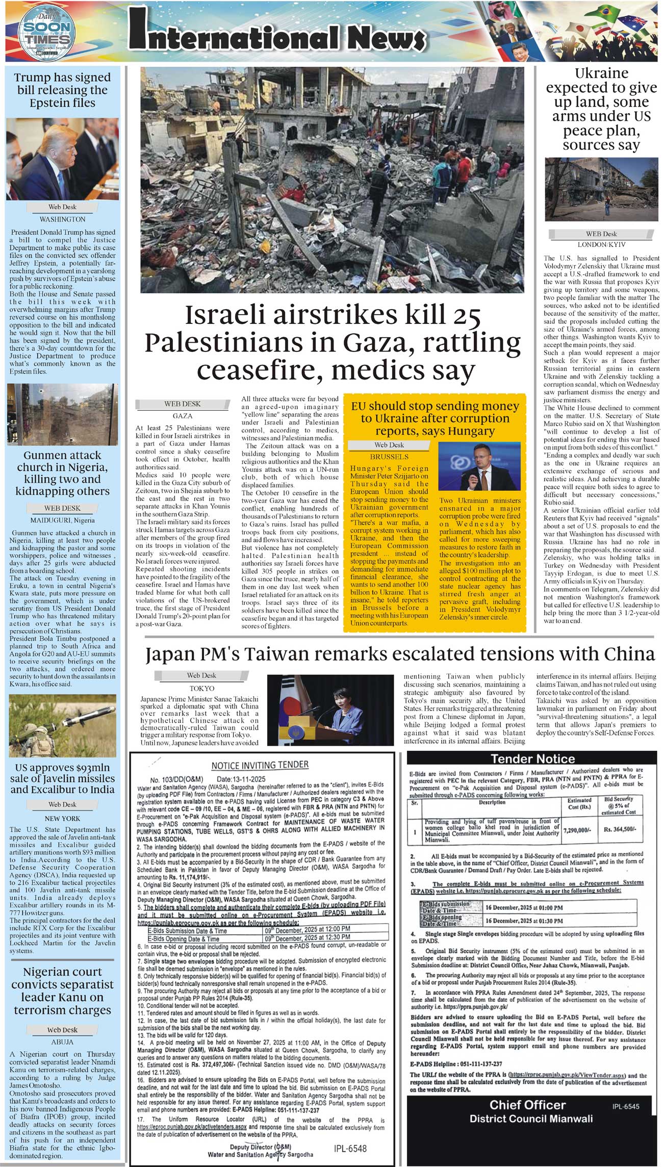 Daily Soon Times Page: 4 November 21, 2025 Daily Soon Times today's ePaper leading English national newspaper from Islamabad, Sargodha, Karachi, Pakistan << First << 4 >> Last >> Page 1Page 2Page 3Page 4 × Daily Soon Times 1234 1234 4