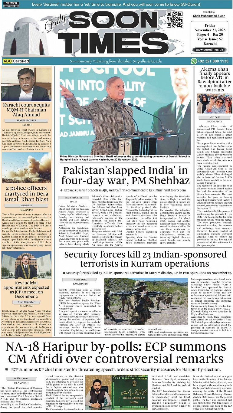 Daily Soon Times today's ePaper leading English national newspaper from Islamabad, Sargodha, Karachi, Pakistan