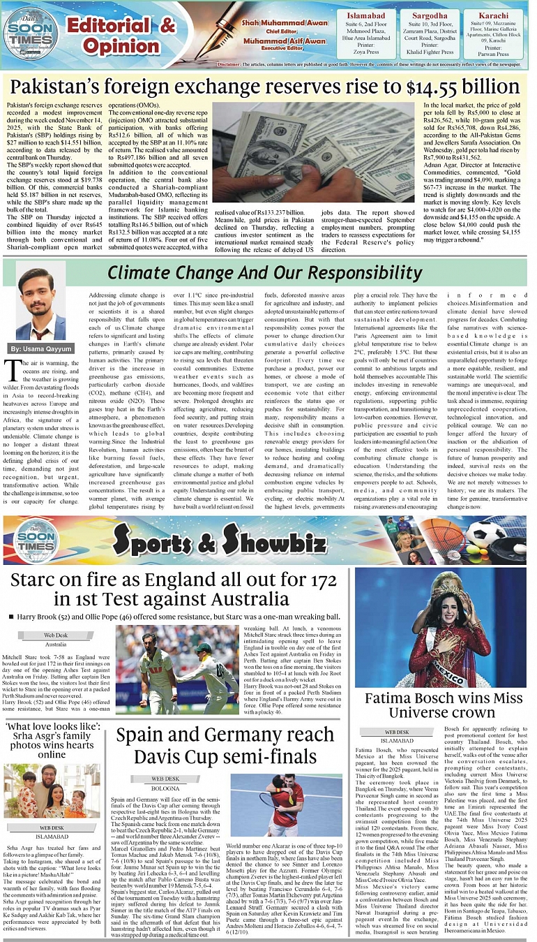 Daily Soon Times Page: 2 November 22, 2025 Daily Soon Times today's ePaper leading English national newspaper from Islamabad, Sargodha, Karachi, Pakistan << First << 2 >> Last >> Page 1Page 2Page 3Page 4 × Daily Soon Times 1.234 1.234 2