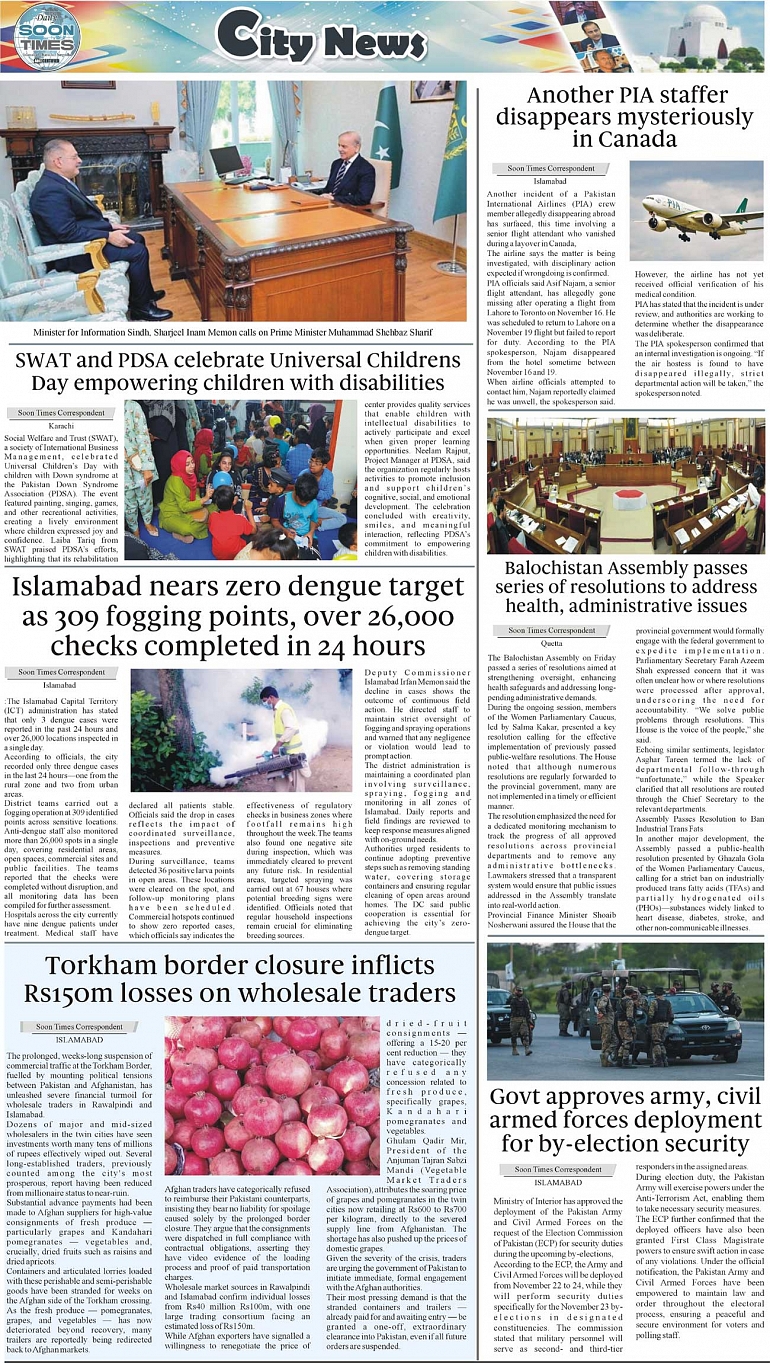 Daily Soon Times Page: 3 November 22, 2025 Daily Soon Times today's ePaper leading English national newspaper from Islamabad, Sargodha, Karachi, Pakistan << First << 3 >> Last >> Page 1Page 2Page 3Page 4 × Daily Soon Times 1k23k4 1k23k4 3k