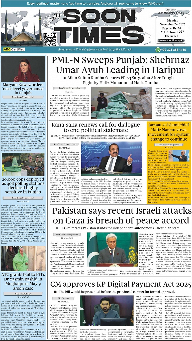 Daily Soon Times November 24, 2025 Daily Soon Times today's ePaper leading English national newspaper from Islamabad, Sargodha, Karachi, Pakistan << First << 1 >> Last >> Page 1Page 2Page 3Page 4 × Daily Soon Times 1.23k4 1.23k4 1.