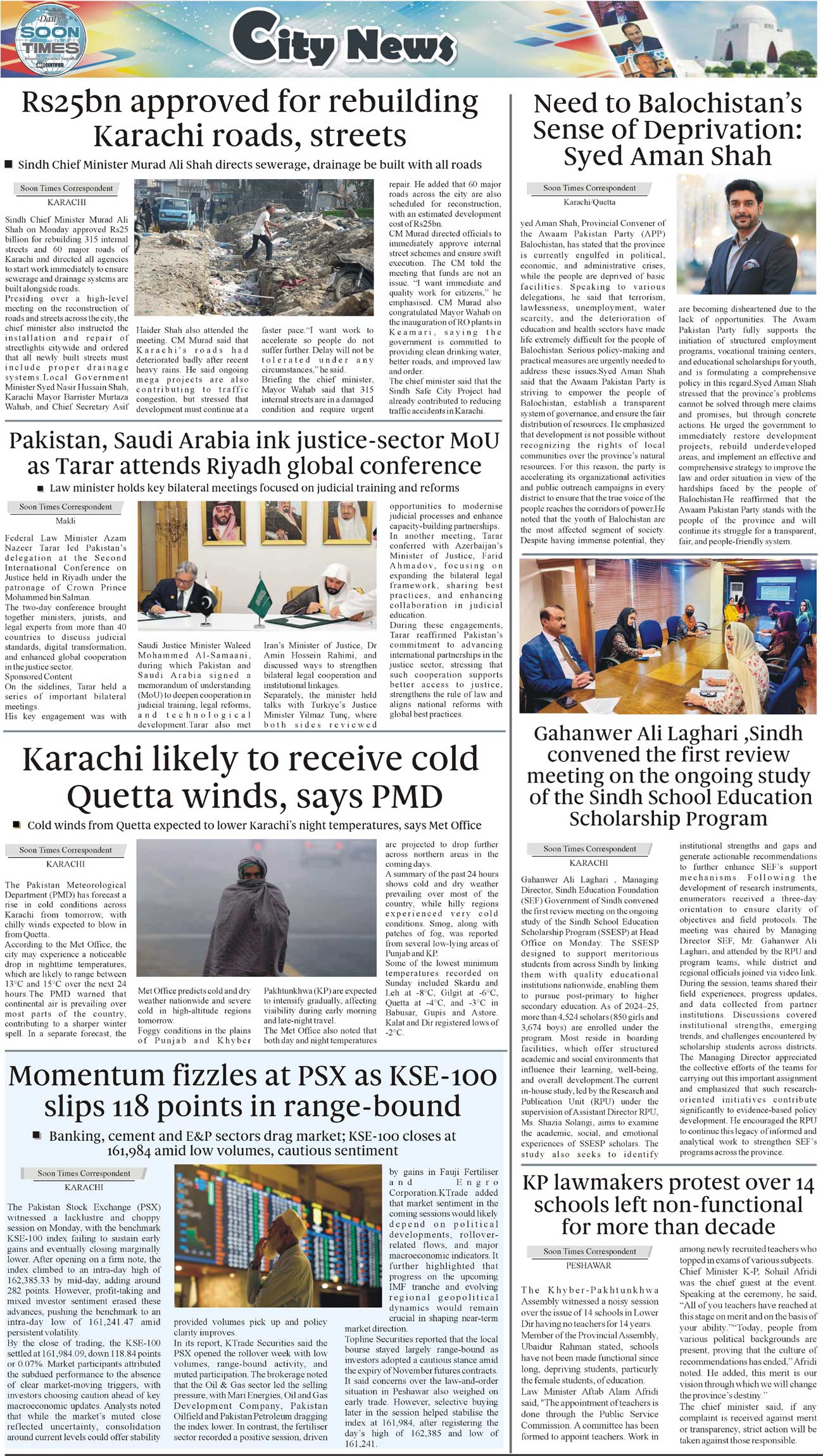 Daily Soon Times Page: 3 November 25, 2025 Daily Soon Times today's ePaper leading English national newspaper from Islamabad, Sargodha, Karachi, Pakistan << First << 3 >> Last >> Page 1Page 2Page 3Page 4 × Daily Soon Times 1k23k4 1k23k4 3k