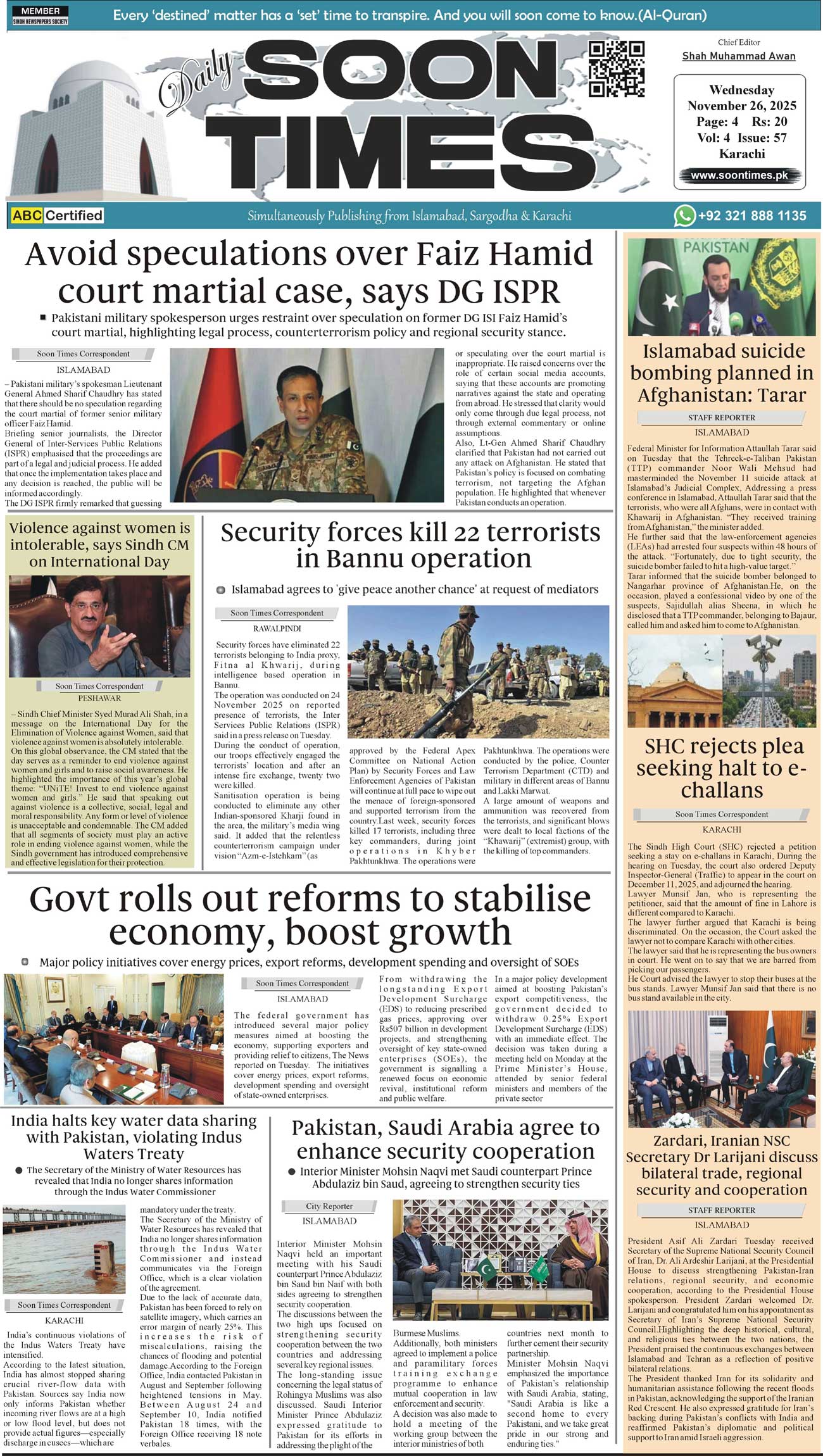 Daily Soon Times today's ePaper leading English national newspaper from Islamabad, Sargodha, Karachi, Pakistan