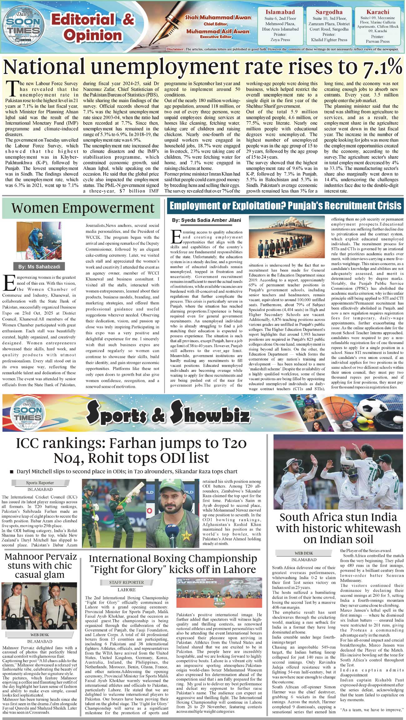 Daily Soon Times Page: 2 November 27, 2025 Daily Soon Times today's ePaper leading English national newspaper from Islamabad, Sargodha, Karachi, Pakistan << First << 2 >> Last >> Page 1Page 2Page 3Page 4 × Daily Soon Times isb234 isb234 2