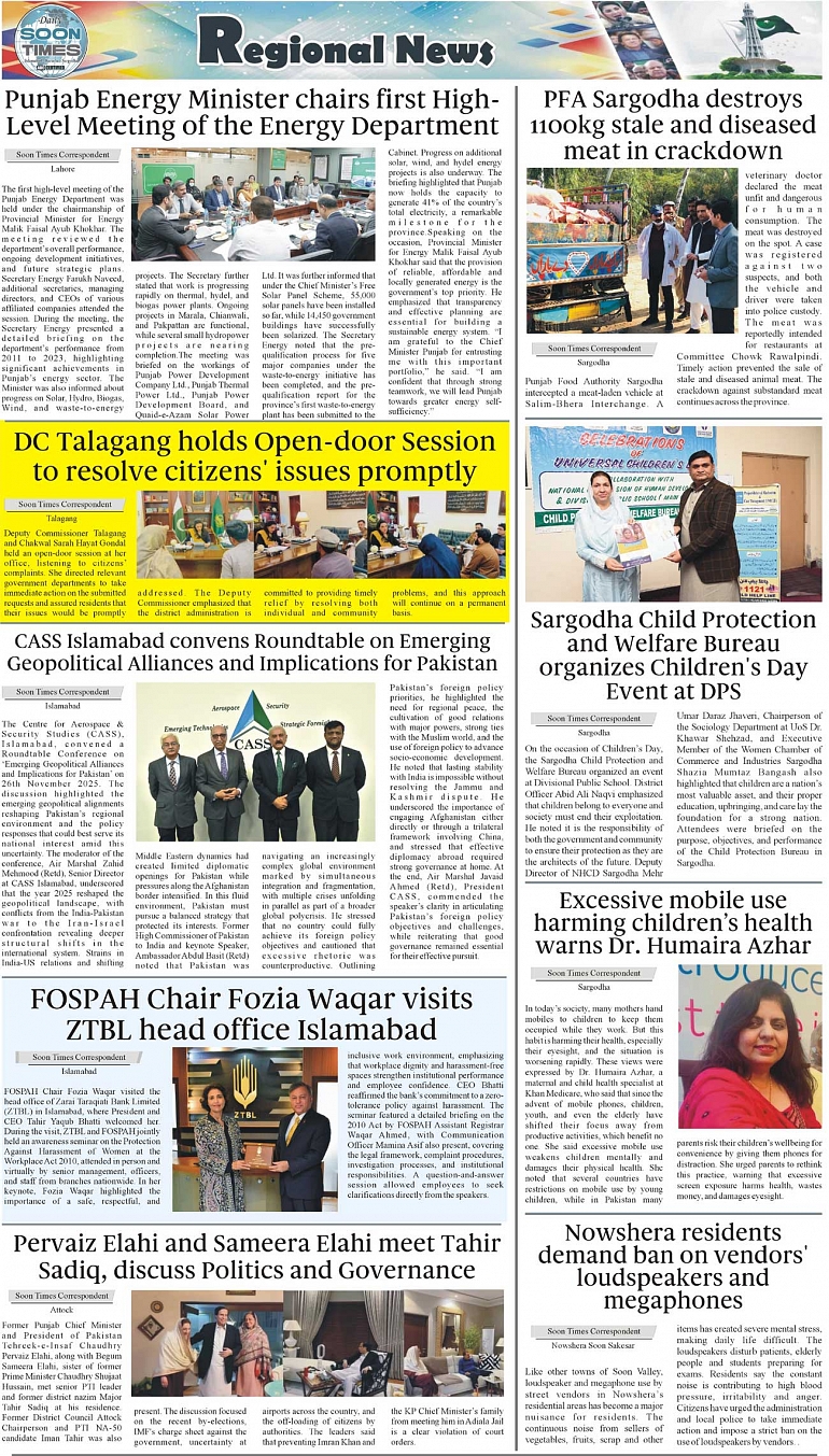 Daily Soon Times Page: 3 November 27, 2025 Daily Soon Times today's ePaper leading English national newspaper from Islamabad, Sargodha, Karachi, Pakistan << First << 3 >> Last >> Page 1Page 2Page 3Page 4 × Daily Soon Times isb234 isb234 3