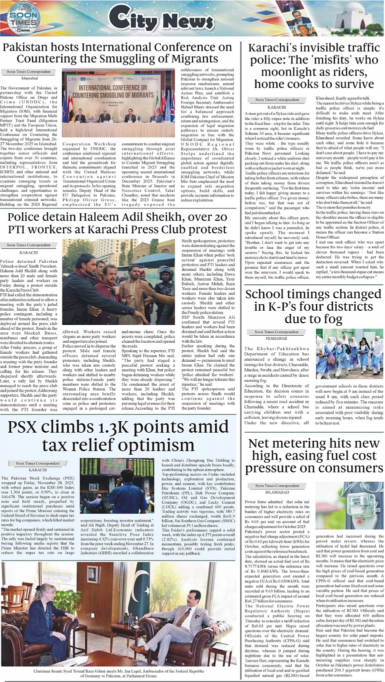 Daily Soon Times Page: 3 November 29, 2025 Daily Soon Times today's ePaper leading English national newspaper from Islamabad, Sargodha, Karachi, Pakistan << First << 3 >> Last >> Page 1Page 2Page 3Page 4 × Daily Soon Times 1k23k4 1k23k4 3k