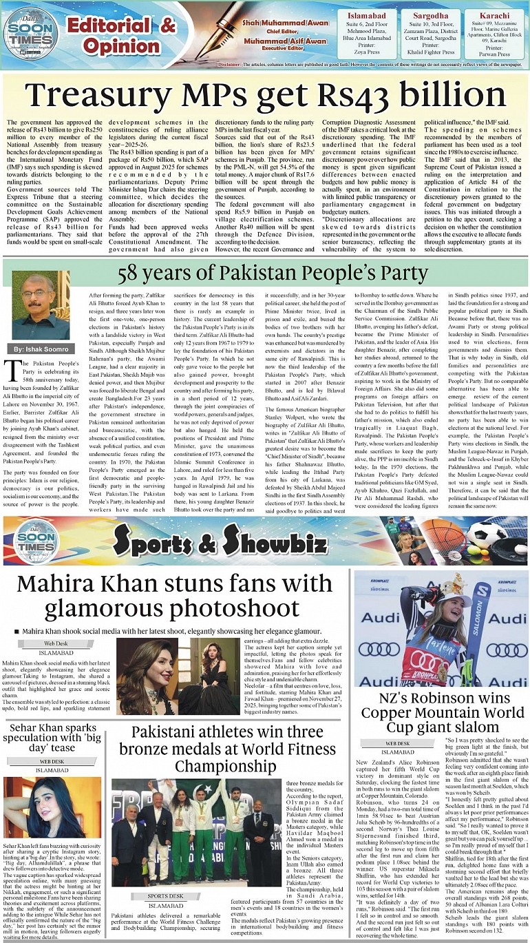 Daily Soon Times Page: 2 December 01, 2025 Daily Soon Times today's ePaper leading English national newspaper from Islamabad, Sargodha, Karachi, Pakistan << First << 2 >> Last >> Page 1Page 2Page 3Page 4 × Daily Soon Times 1k23k4 1k23k4 2
