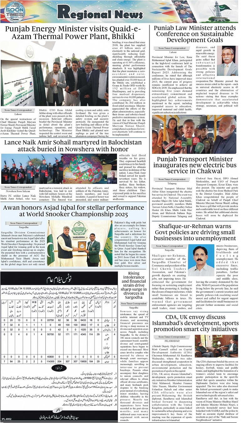 Daily Soon Times Page: 3 December 04, 2025 Daily Soon Times today's ePaper leading English national newspaper from Islamabad, Sargodha, Karachi, Pakistan << First << 3 >> Last >> Page 1Page 2Page 3Page 4 × Daily Soon Times 1234 1234 3