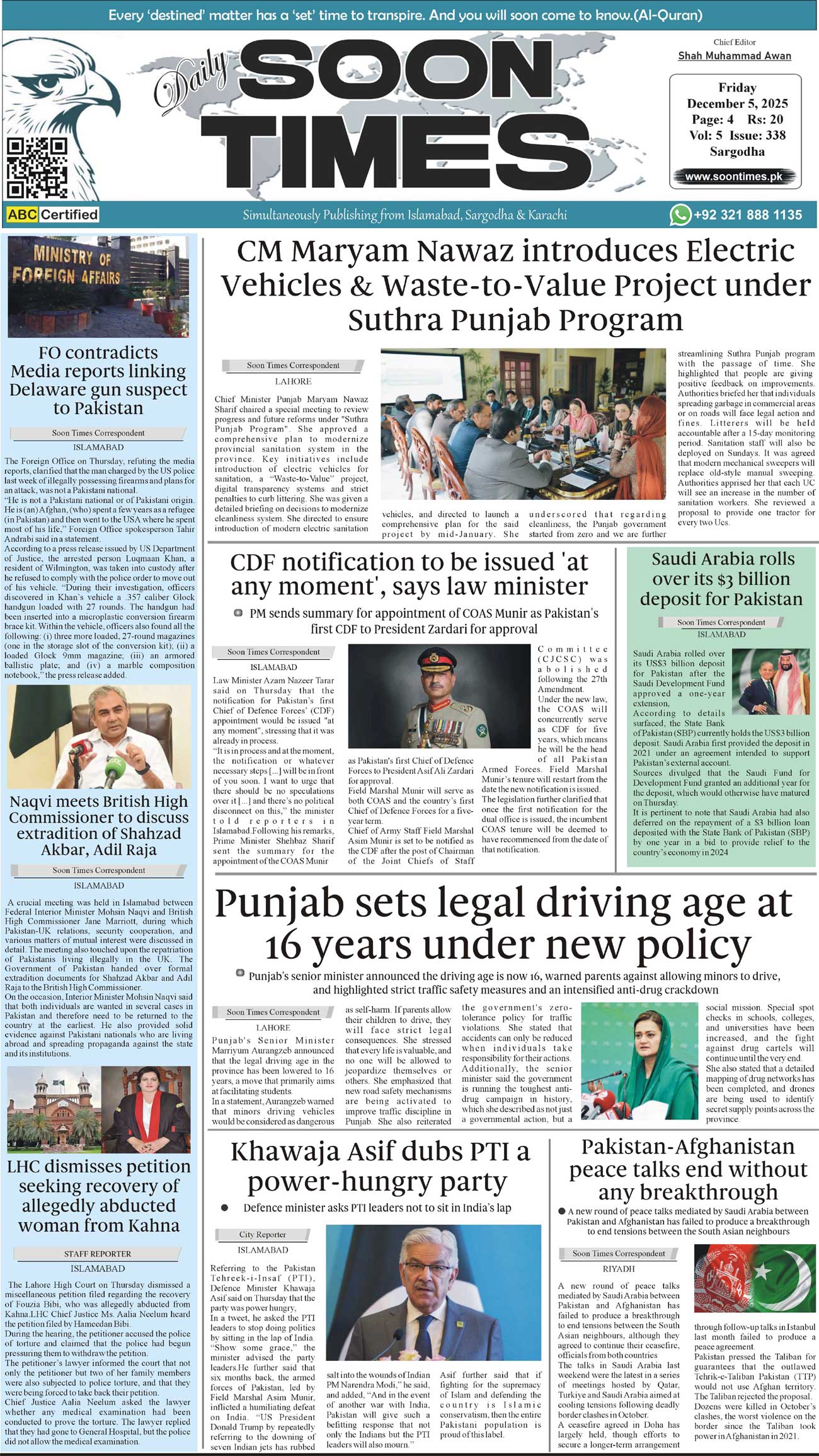 Daily Soon Times December 05, 2025 Daily Soon Times today's ePaper leading English national newspaper from Islamabad, Sargodha, Karachi, Pakistan << First << 1 >> Last >> Page 1Page 2Page 3Page 4 × Daily Soon Times 123,4s 123,4s 1