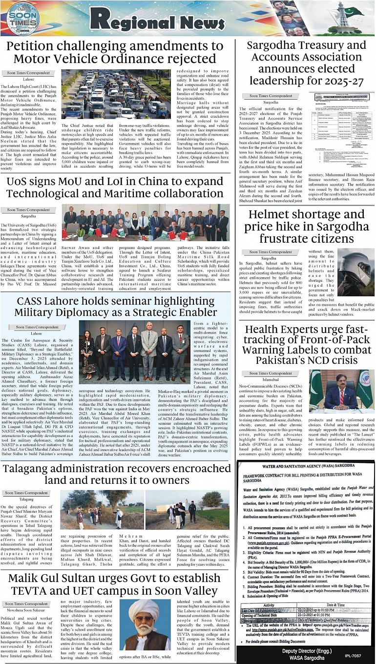 Daily Soon Times Page: 3 December 05, 2025 Daily Soon Times today's ePaper leading English national newspaper from Islamabad, Sargodha, Karachi, Pakistan << First << 3 >> Last >> Page 1Page 2Page 3Page 4 × Daily Soon Times 123,4s 123,4s 3,