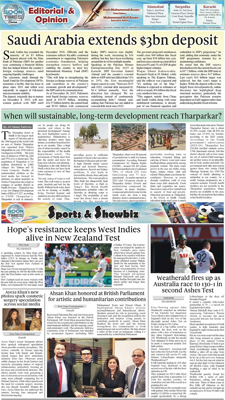 Daily Soon Times Page: 2 December 06, 2025 Daily Soon Times today's ePaper leading English national newspaper from Islamabad, Sargodha, Karachi, Pakistan << First << 2 >> Last >> Page 1Page 2Page 3Page 4 × Daily Soon Times 1.234 1.234 2