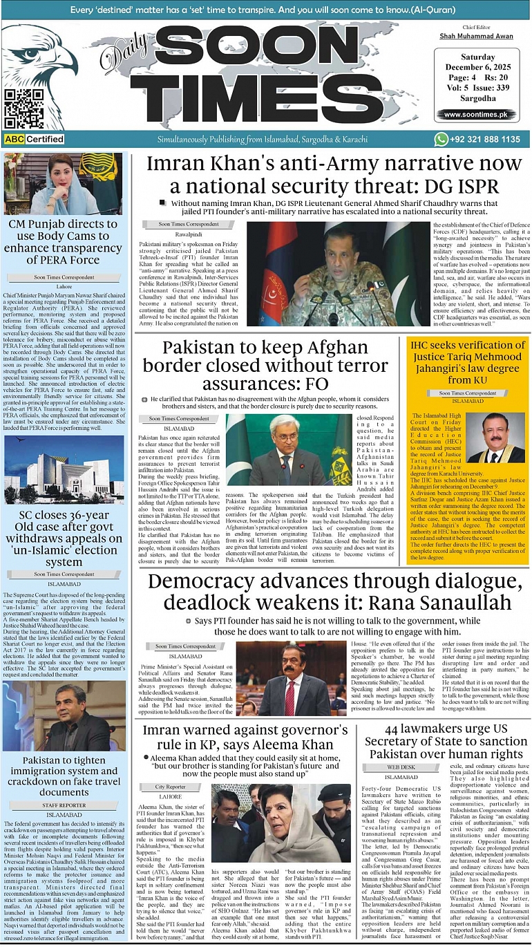 Daily Soon Times December 06, 2025 Daily Soon Times today's ePaper leading English national newspaper from Islamabad, Sargodha, Karachi, Pakistan << First << 1 >> Last >> Page 1Page 2Page 3 × Daily Soon Times 123 123 1
