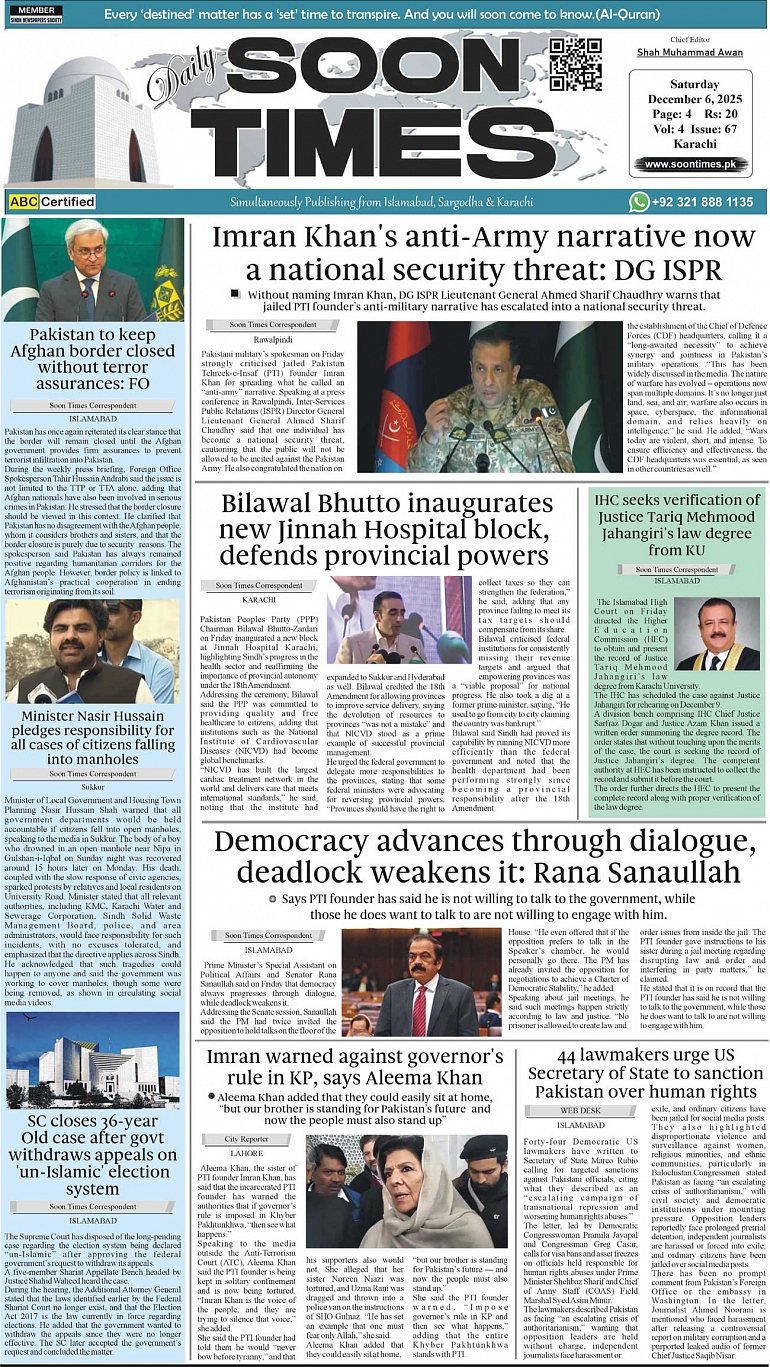 Daily Soon Times December 06, 2025 Daily Soon Times today's ePaper leading English national newspaper from Islamabad, Sargodha, Karachi, Pakistan << First << 1 >> Last >> Page 1Page 2Page 3Page 4 × Daily Soon Times 1k23k4 1k23k4 1k