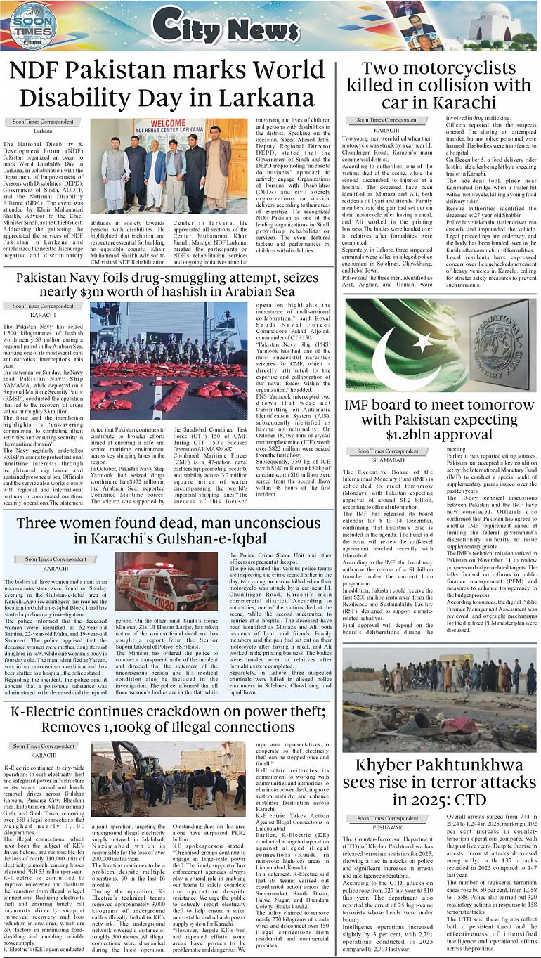 Daily Soon Times Page: 3 December 08, 2025 Daily Soon Times today's ePaper leading English national newspaper from Islamabad, Sargodha, Karachi, Pakistan << First << 3 >> Last >> Page 1Page 2Page 3Page 4 × Daily Soon Times 1k2k3k4 1k2k3k4 3k