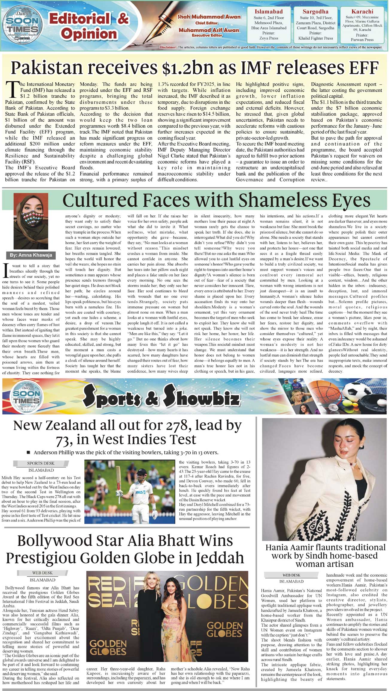 Daily Soon Times Page: 2 December 12, 2025 Daily Soon Times today's ePaper leading English national newspaper from Islamabad, Sargodha, Karachi, Pakistan << First << 2 >> Last >> Page 1Page 2Page 3Page 4 × Daily Soon Times 1k23k4k 1k23k4k 2