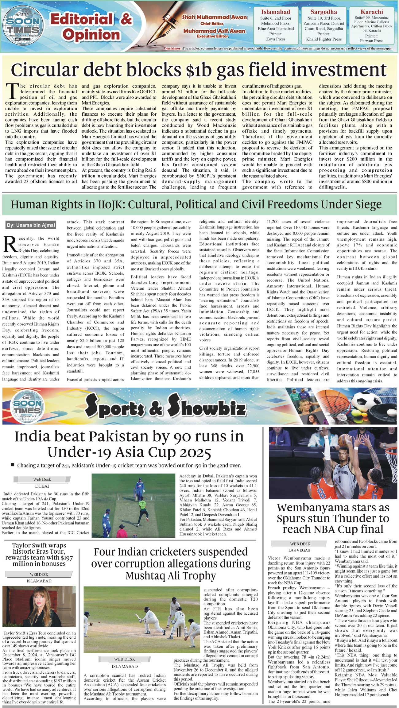Daily Soon Times Page: 2 December 15, 2025 Daily Soon Times today's ePaper leading English national newspaper from Islamabad, Sargodha, Karachi, Pakistan << First << 2 >> Last >> Page 1Page 2Page 3Page 4 × Daily Soon Times 1k23k4k 1k23k4k 2