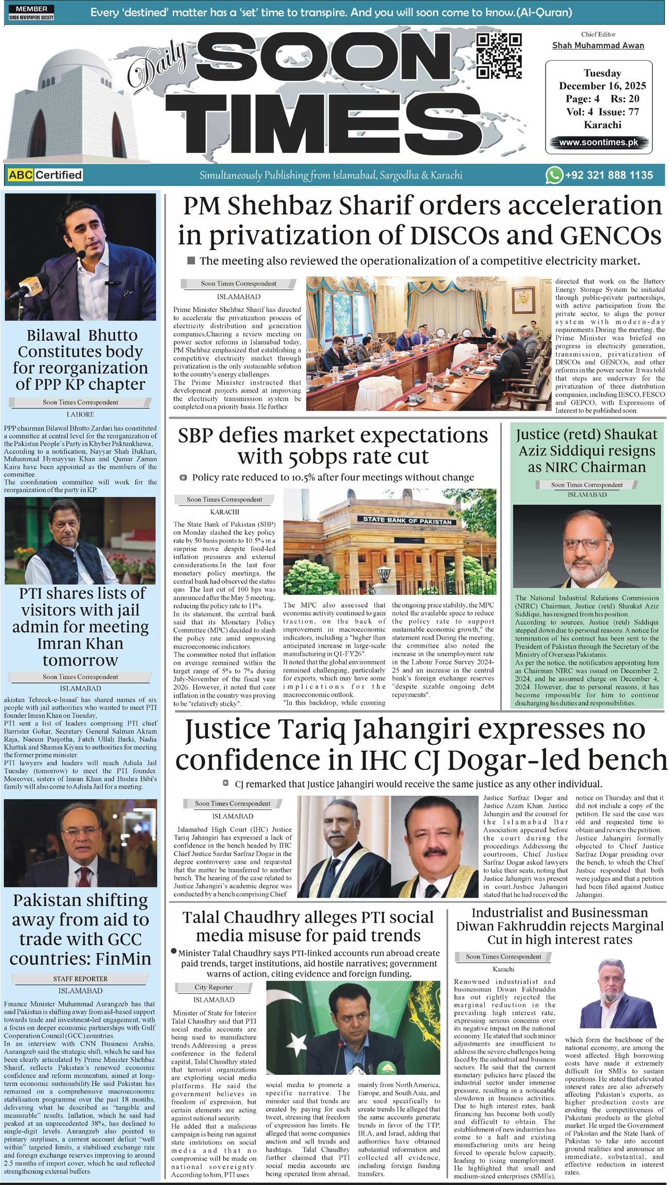 Daily Soon Times December 16, 2025 Daily Soon Times today's ePaper leading English national newspaper from Islamabad, Sargodha, Karachi, Pakistan << First << 1 >> Last >> Page 1Page 2Page 3Page 4 × Daily Soon Times 1k2k3k4k 1k2k3k4k 1k