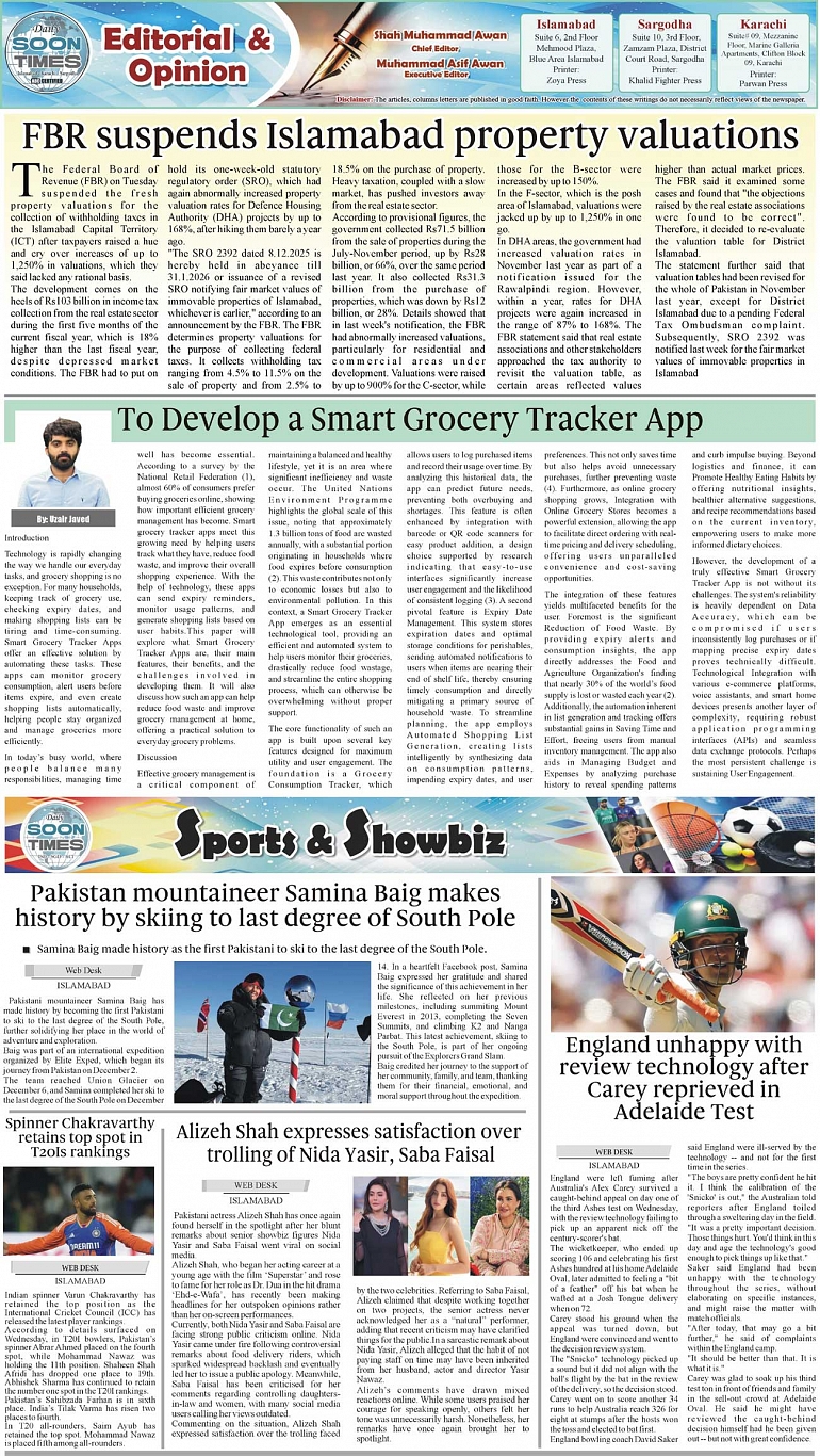 Daily Soon Times Page: 2 December 18, 2025 Daily Soon Times today's ePaper leading English national newspaper from Islamabad, Sargodha, Karachi, Pakistan << First << 2 >> Last >> Page 1Page 2Page 3Page 4 × Daily Soon Times 1.234k 1.234k 2