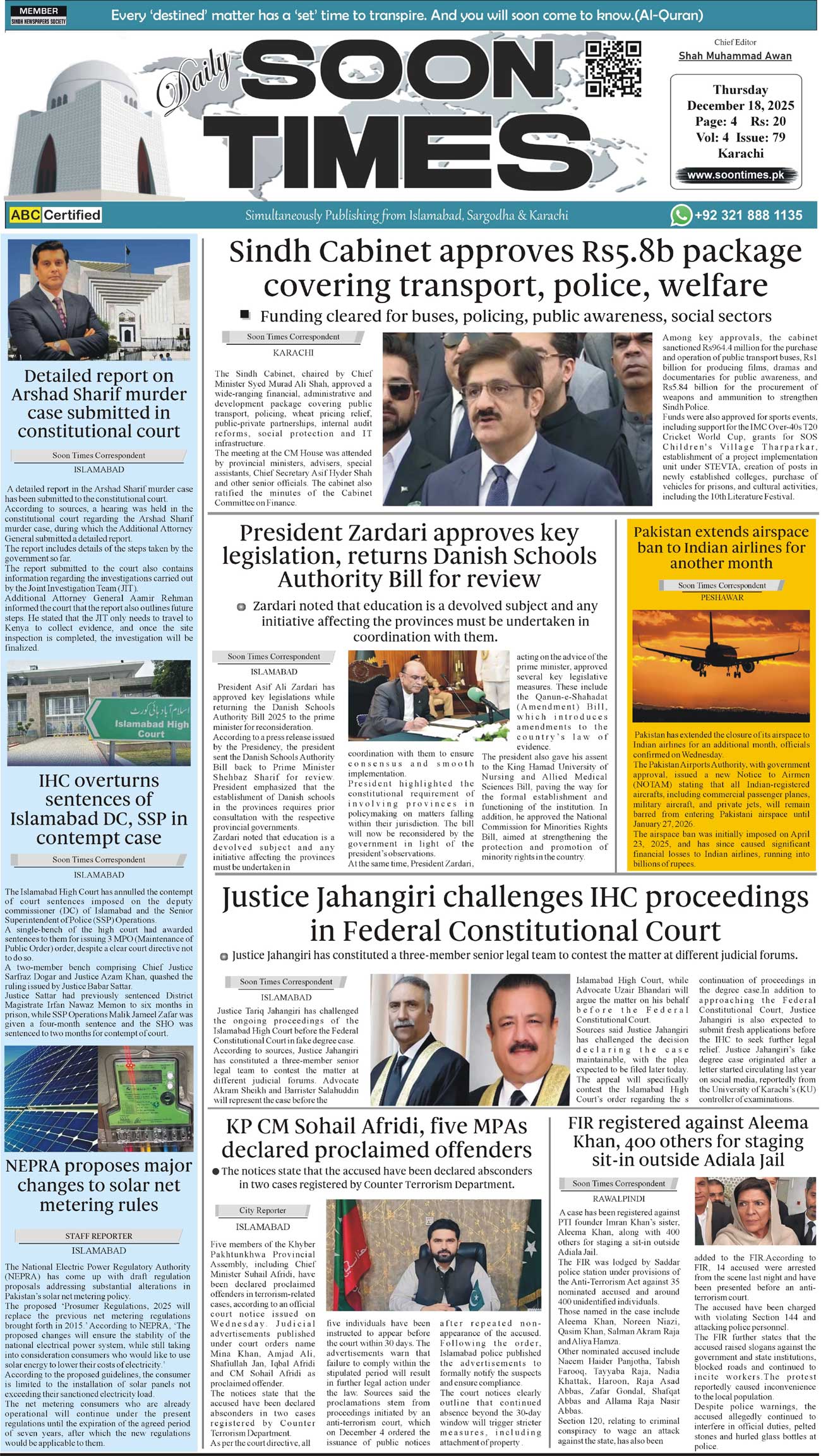 Daily Soon Times December 18, 2025 Daily Soon Times today's ePaper leading English national newspaper from Islamabad, Sargodha, Karachi, Pakistan << First << 1 >> Last >> Page 1Page 2Page 3Page 4 × Daily Soon Times 1k23k4k 1k23k4k 1k