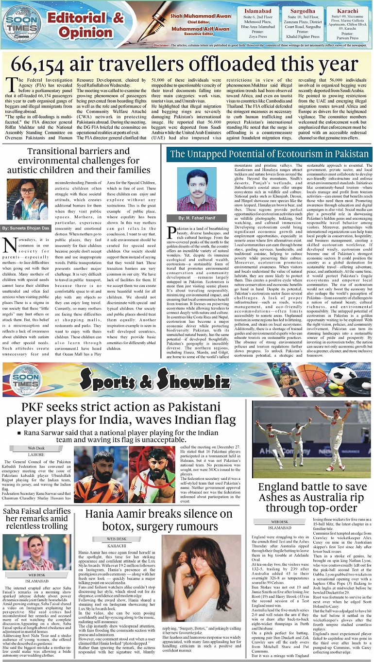 Daily Soon Times Page: 2 December 19, 2025 Daily Soon Times today's ePaper leading English national newspaper from Islamabad, Sargodha, Karachi, Pakistan << First << 2 >> Last >> Page 1Page 2Page 3Page 4 × Daily Soon Times 1234 1234 2