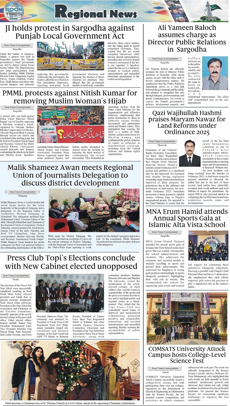 Daily Soon Times Page: 3 December 22, 2025 Daily Soon Times today's ePaper leading English national newspaper from Islamabad, Sargodha, Karachi, Pakistan << First << 3 >> Last >> Page 1Page 2Page 3Page 4 × Daily Soon Times 1.234 1.234 3