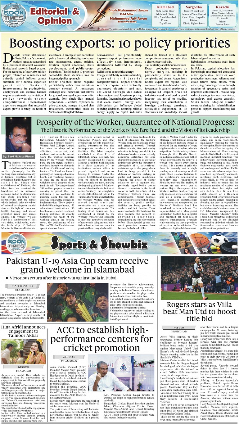 Daily Soon Times Page: 2 December 23, 2025 Daily Soon Times today's ePaper leading English national newspaper from Islamabad, Sargodha, Karachi, Pakistan << First << 2 >> Last >> Page 1Page 2Page 3Page 4 × Daily Soon Times 1.234 1.234 2