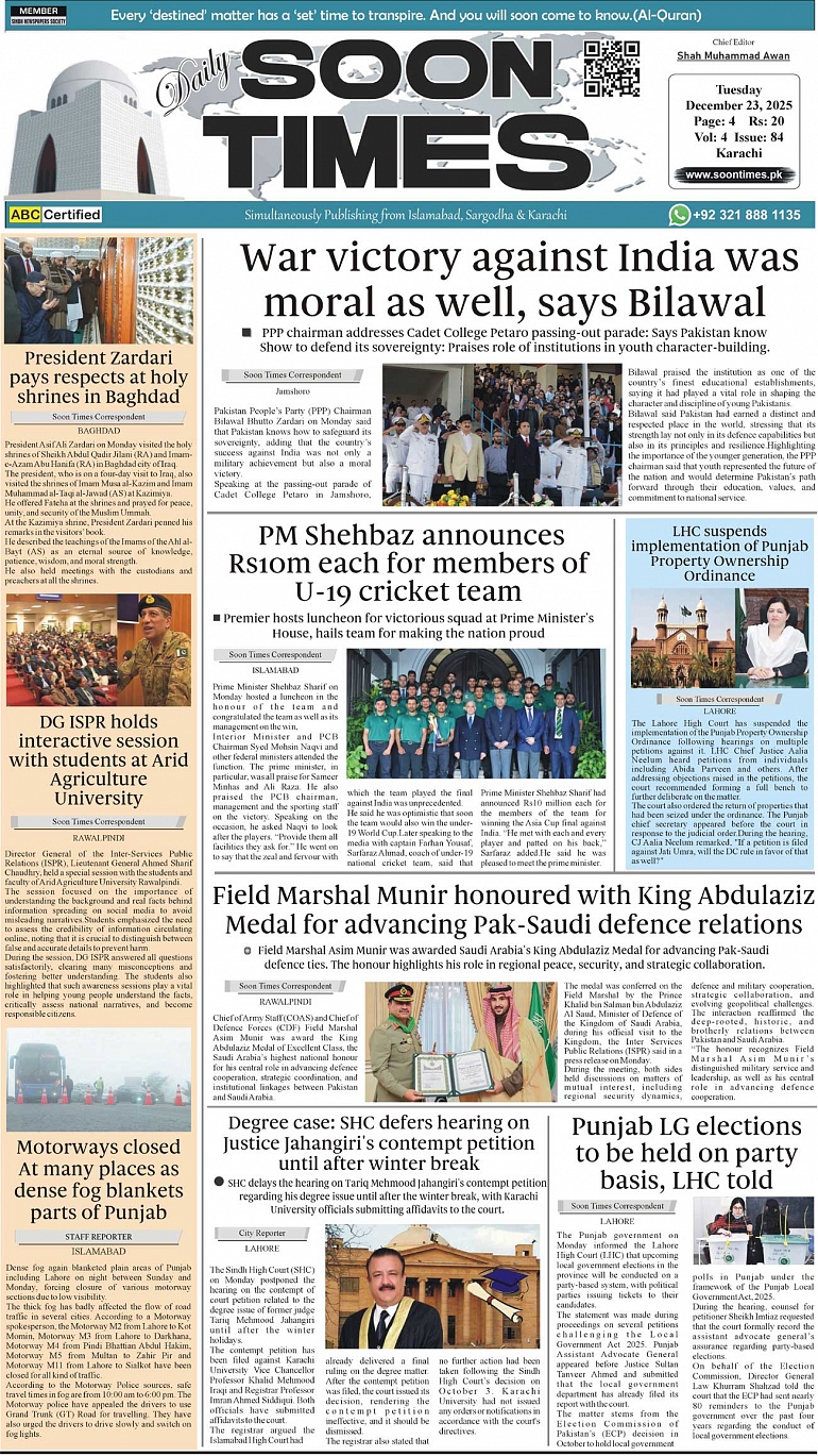 Daily Soon Times December 23, 2025 Daily Soon Times today's ePaper leading English national newspaper from Islamabad, Sargodha, Karachi, Pakistan << First << 1 >> Last >> Page 1Page 2Page 3Page 4 × Daily Soon Times 1k2k3k4 1k2k3k4 1k