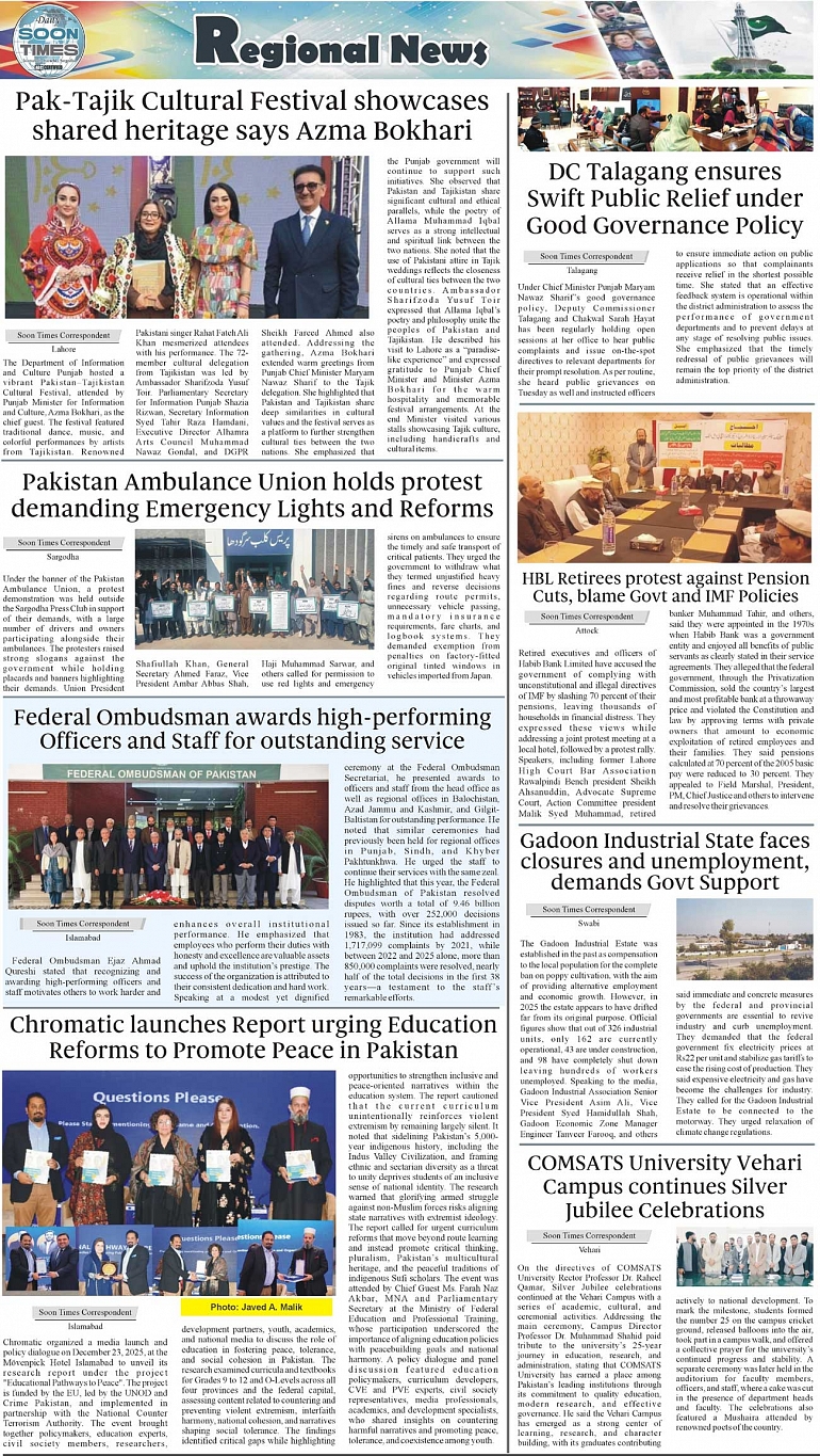 Daily Soon Times Page: 3 December 24, 2025 Daily Soon Times today's ePaper leading English national newspaper from Islamabad, Sargodha, Karachi, Pakistan << First << 3 >> Last >> Page 1Page 2Page 3Page 4 × Daily Soon Times 1234 1234 3