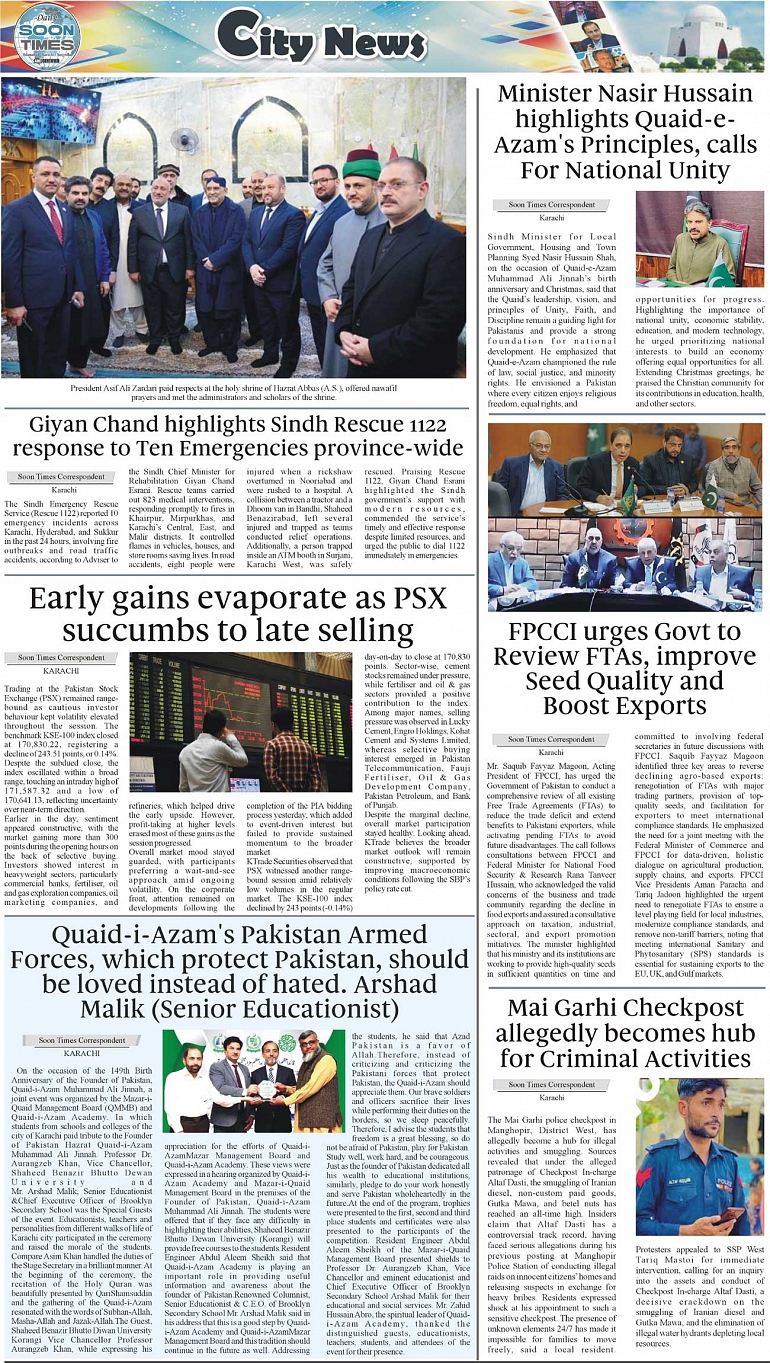 Daily Soon Times Page: 3 December 25, 2025 Daily Soon Times today's ePaper leading English national newspaper from Islamabad, Sargodha, Karachi, Pakistan << First << 3 >> Last >> Page 1Page 2Page 3Page 4 × Daily Soon Times 1k2k3k4a 1k2k3k4a 3k