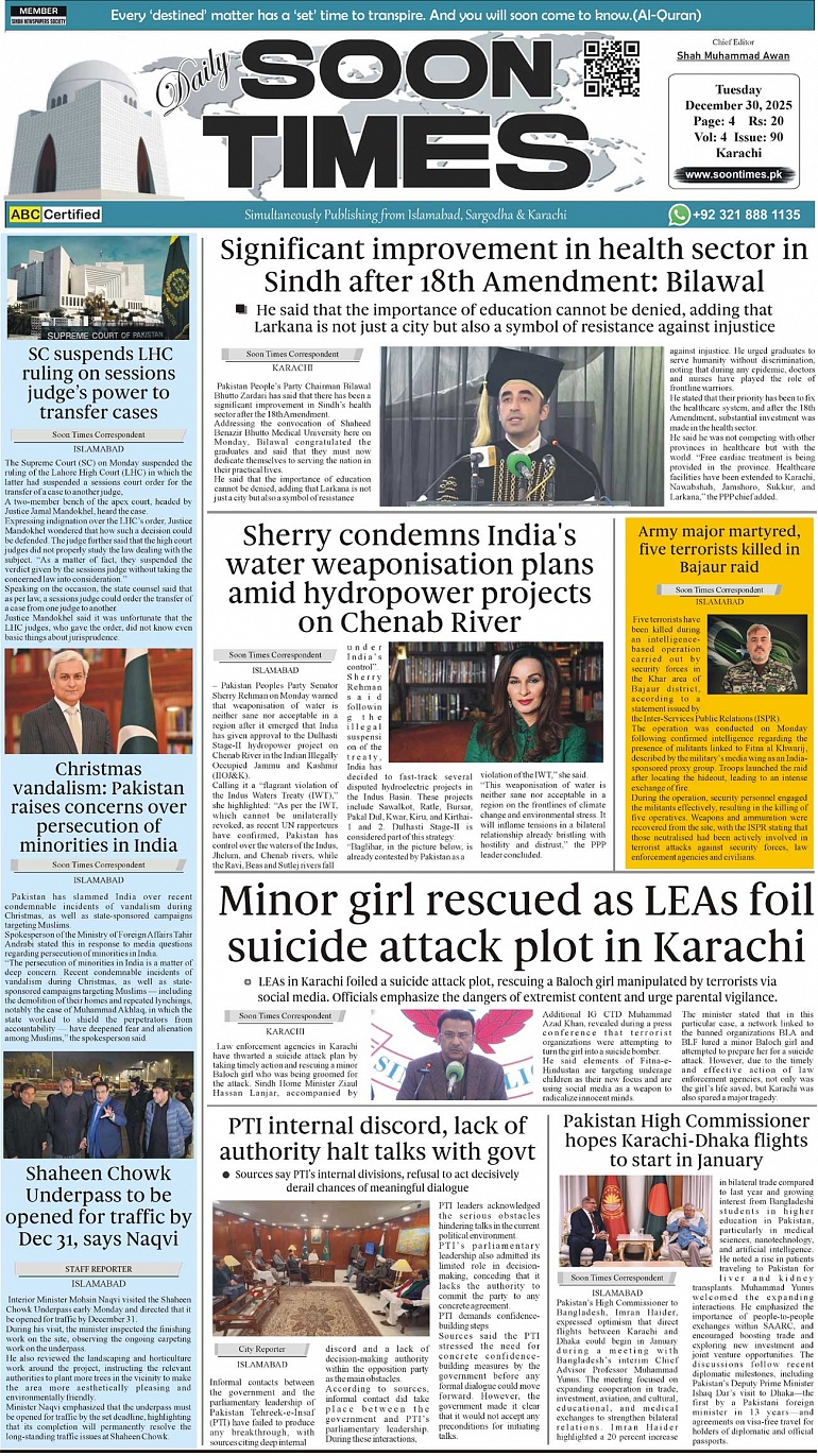 Daily Soon Times December 30, 2025 Daily Soon Times today's ePaper leading English national newspaper from Islamabad, Sargodha, Karachi, Pakistan << First << 1 >> Last >> Page 1Page 2Page 3Page 4 × Daily Soon Times 1k23k4 1k23k4 1k