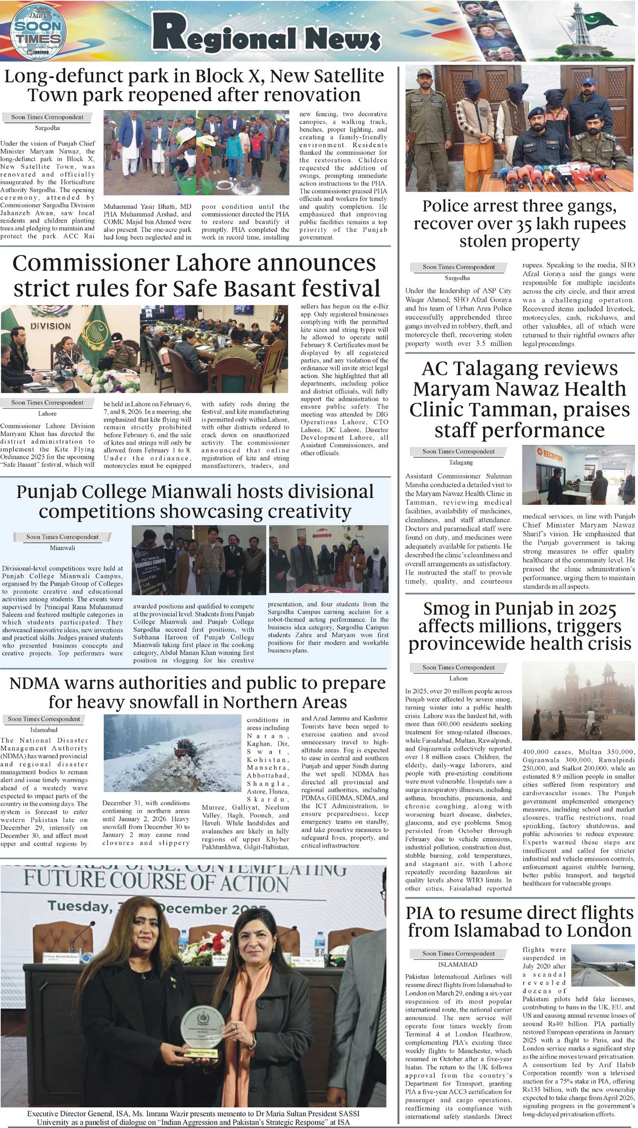 Daily Soon Times Page: 3 December 31, 2025 Daily Soon Times today's ePaper leading English national newspaper from Islamabad, Sargodha, Karachi, Pakistan << First << 3 >> Last >> Page 1Page 2Page 3Page 4 × Daily Soon Times 1234, 1234, 3