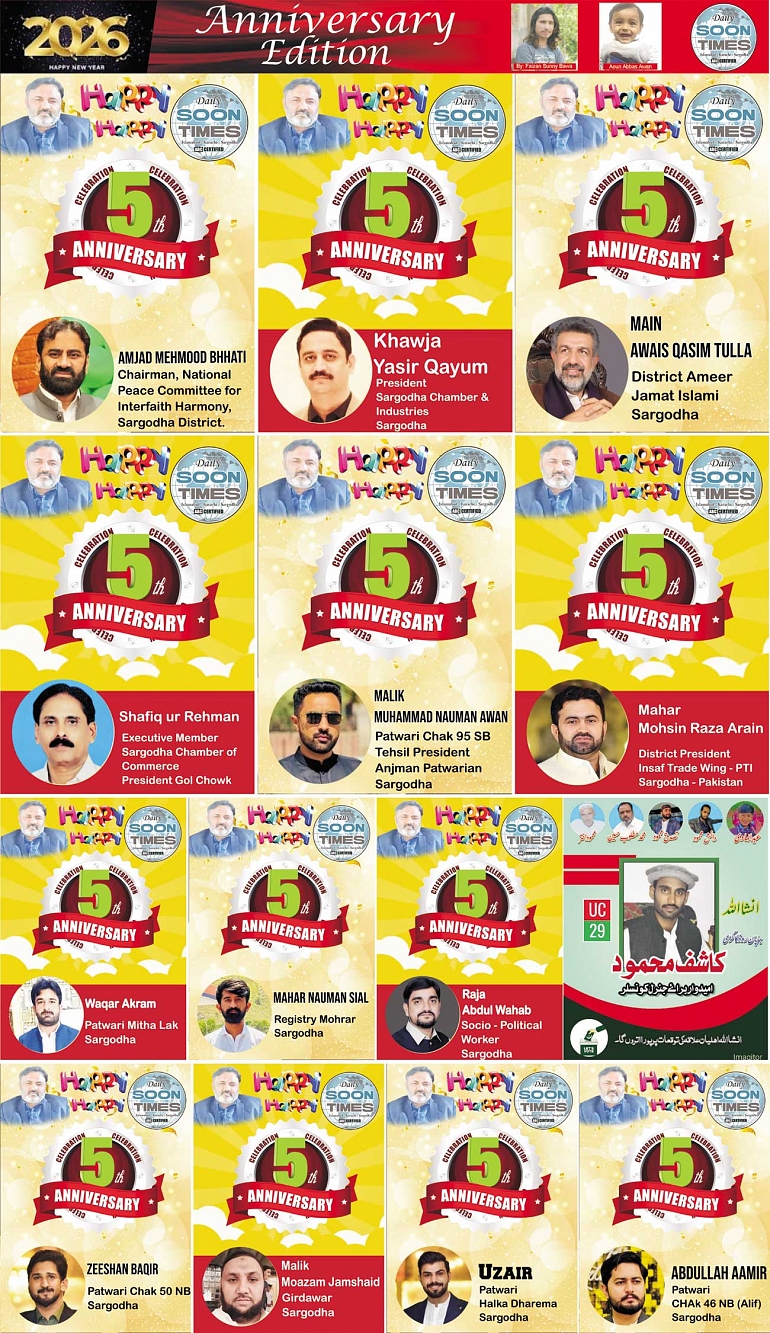 Daily Soon Times Page: 4 January 01, 2026 Daily Soon Times today's ePaper leading English national newspaper from Islamabad, Sargodha, Karachi, Pakistan << First << 4 >> Last >> Page 1Page 2Page 3Page 4 × Daily Soon Times 1234s 1234s 4s