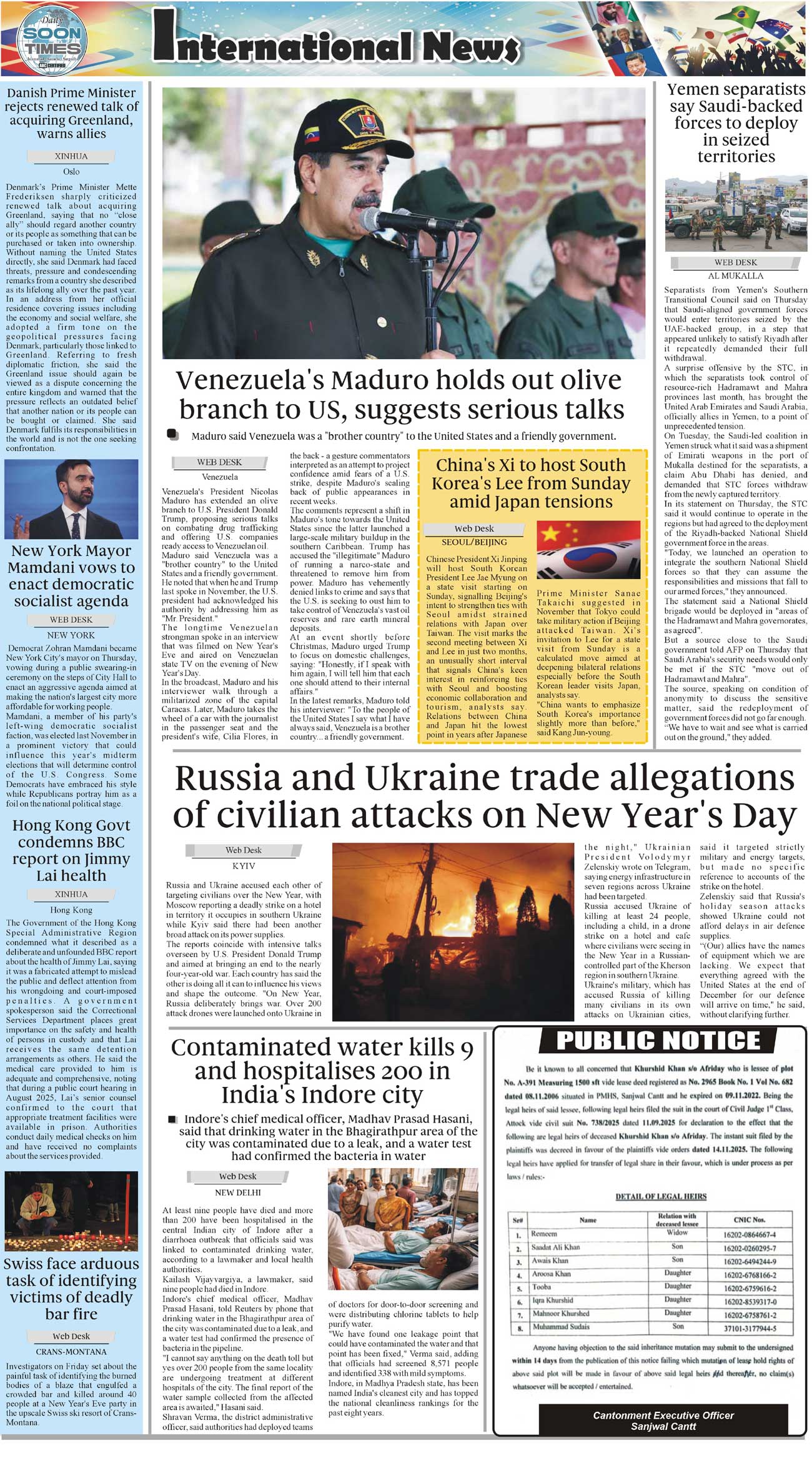 Daily Soon Times Page: 4 January 03, 2026 Daily Soon Times today's ePaper leading English national newspaper from Islamabad, Sargodha, Karachi, Pakistan << First << 4 >> Last >> Page 1Page 2Page 3Page 4 × Daily Soon Times 1k23k4 1k23k4 4