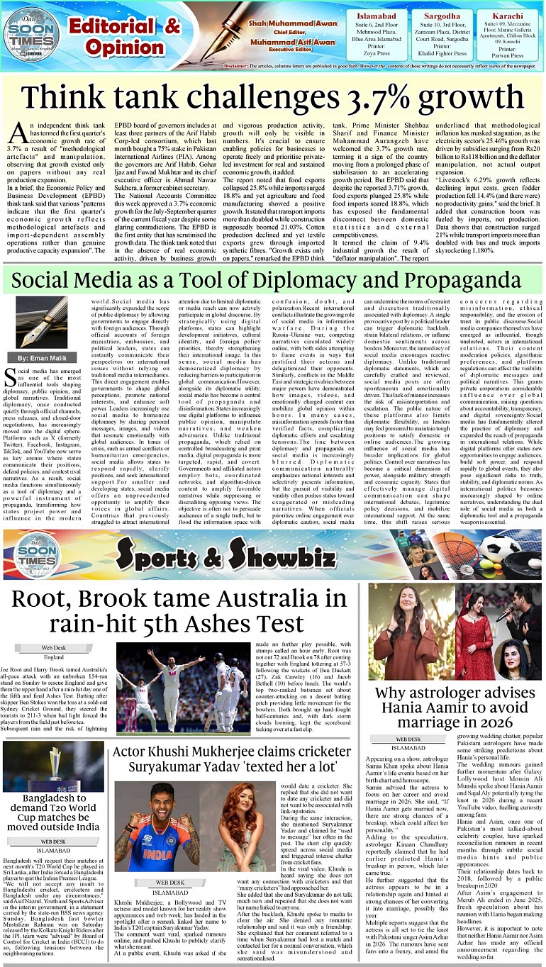 Daily Soon Times Page: 2 January 05, 2026 Daily Soon Times today's ePaper leading English national newspaper from Islamabad, Sargodha, Karachi, Pakistan << First << 2 >> Last >> Page 1Page 2Page 3Page 4 × Daily Soon Times 1.234 1.234 2